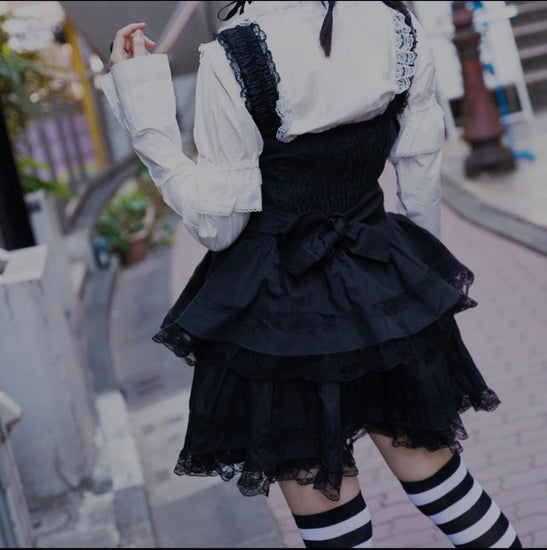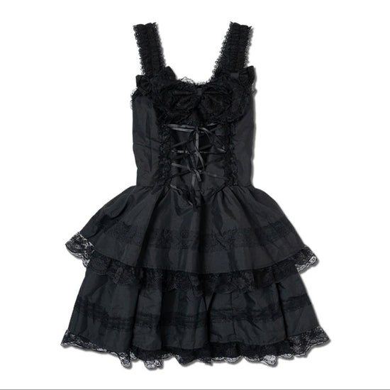 This Gothic Lolita dress is adorned with numerous lovely ribbons.