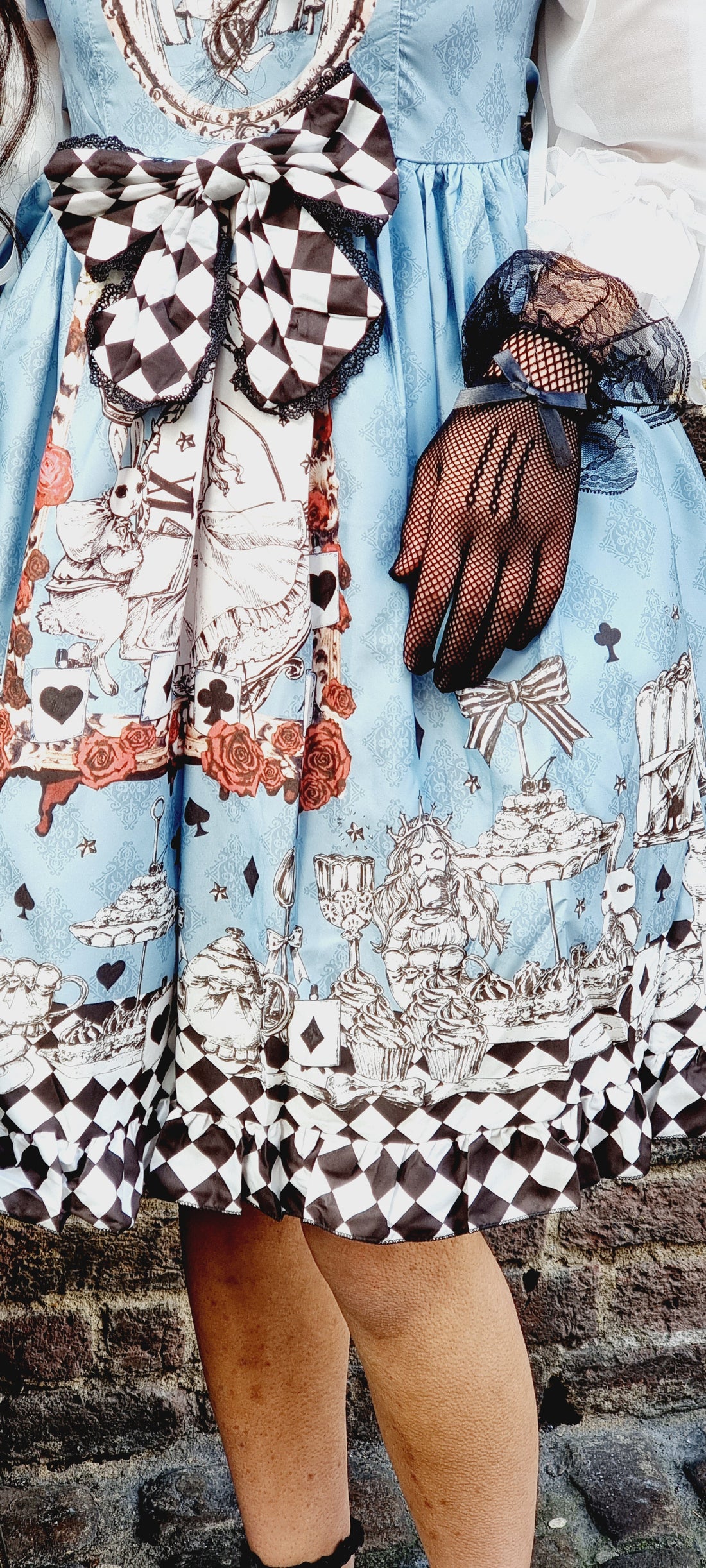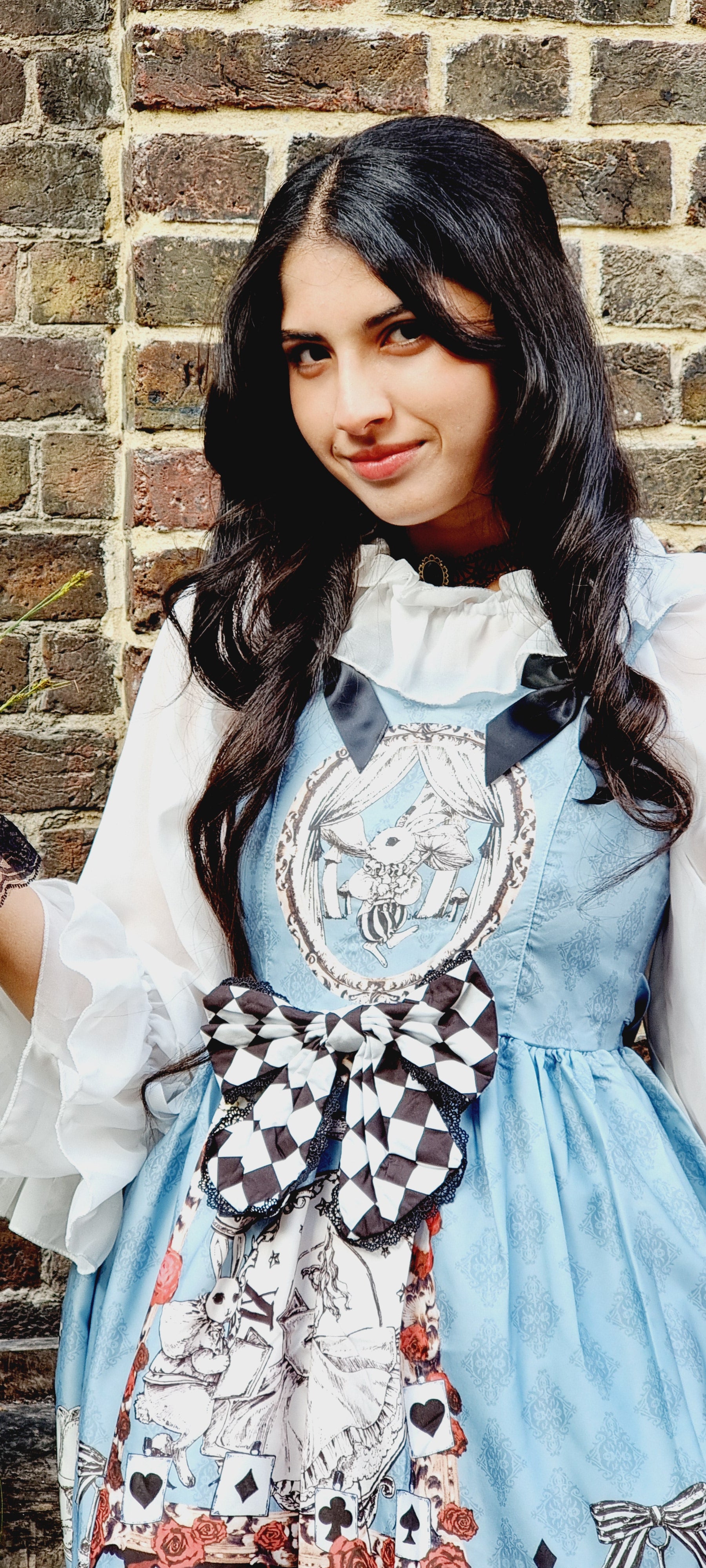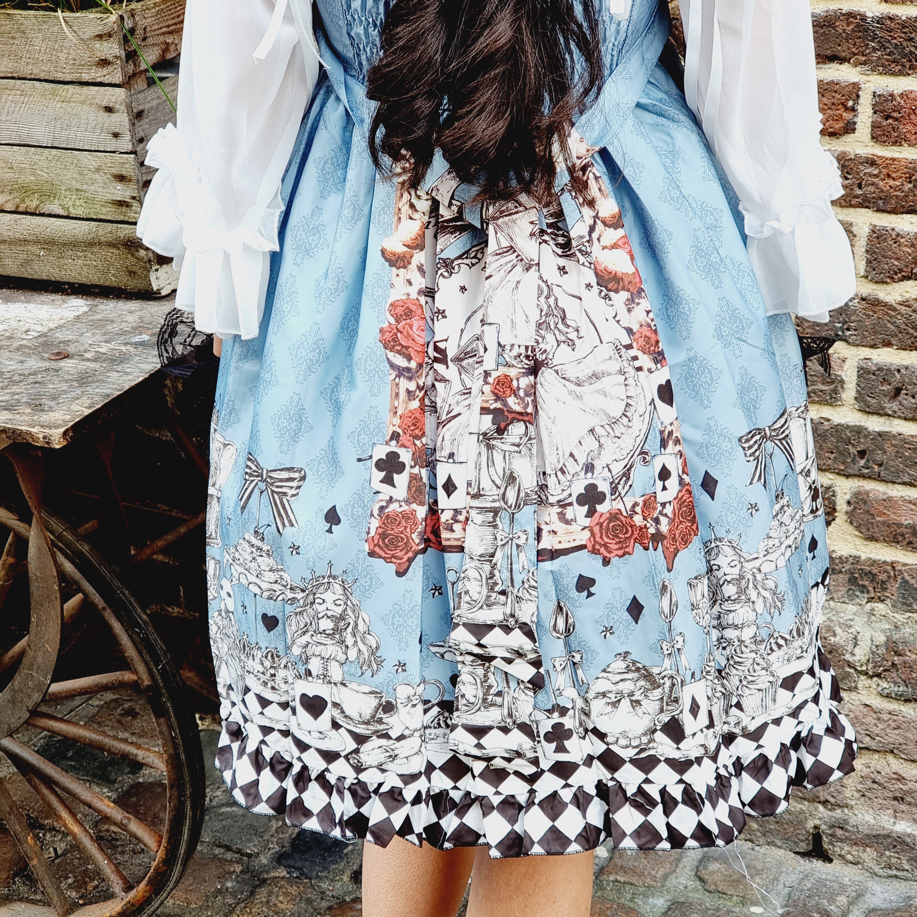 Inspired Design: This dress set is inspired by the classic tale of Alice in Wonderland, featuring intricate details like the famous card symbols, roses, and classic motifs that will transport you straight to Wonderland.