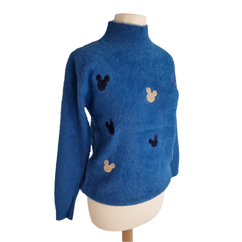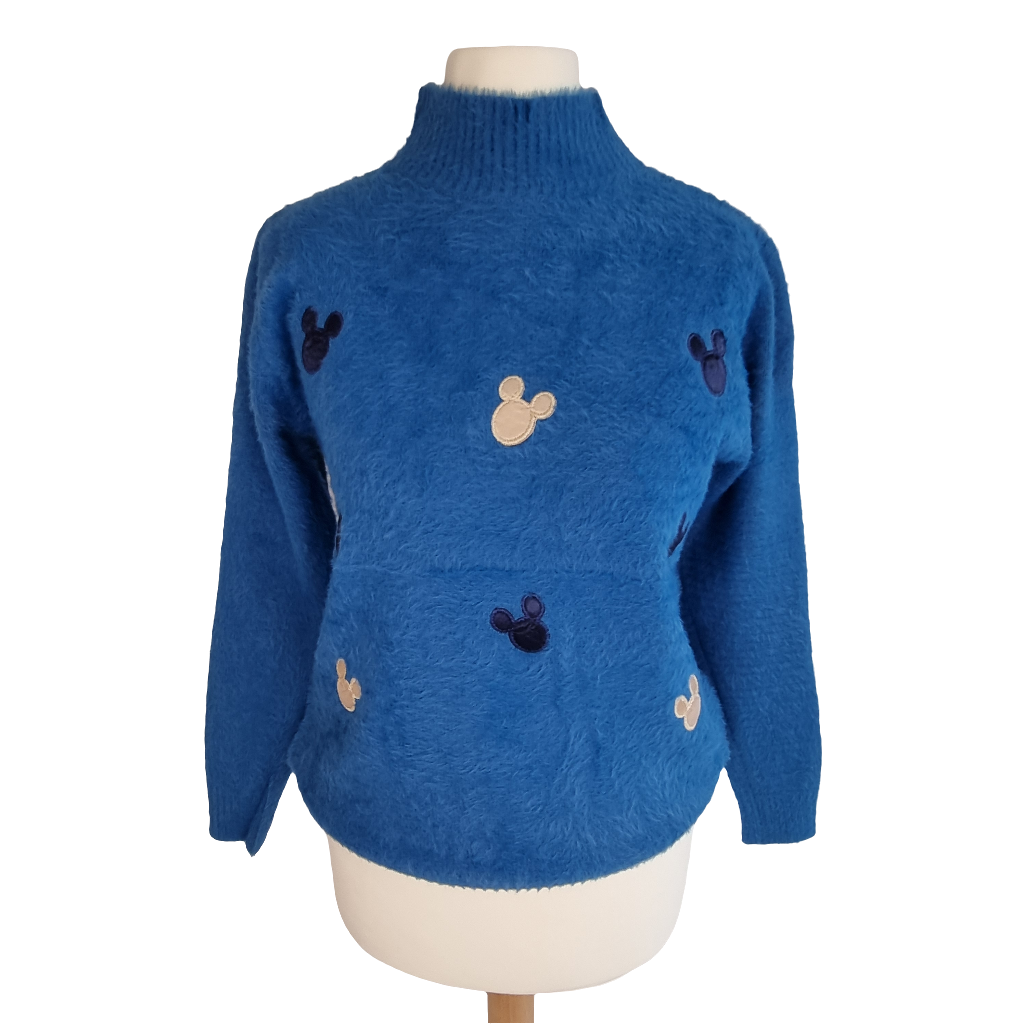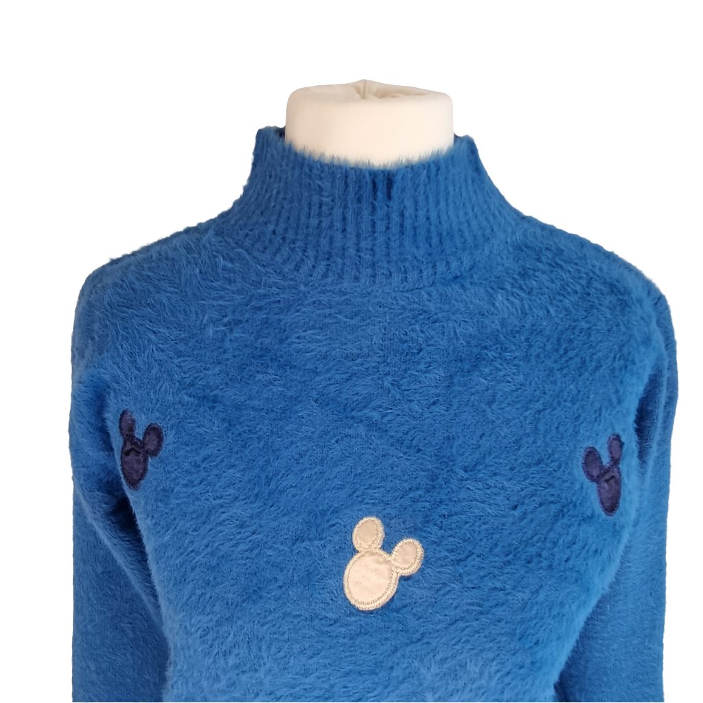 Add a playful touch to your wardrobe with this adorable Mickey-inspired sweater! Crafted from ultra-soft, plush material, this cozy blue sweater features embroidered Mickey-shaped patches in contrasting shades, making it both fun and stylish. With its comfortable fit and high neckline, this sweater is perfect for chilly days, pairing effortlessly with jeans or leggings for a casual, cute look. Ideal for Disney fans and anyone looking to add a touch of whimsy to their winter style! Available in various colors to match your unique taste.
