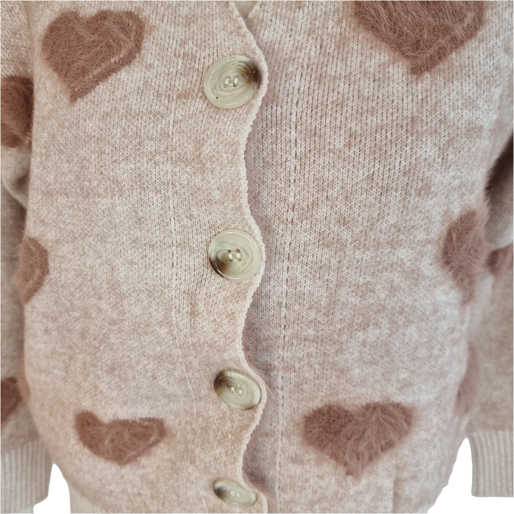 Fuzzy Heart Beige Cozy Cardigan