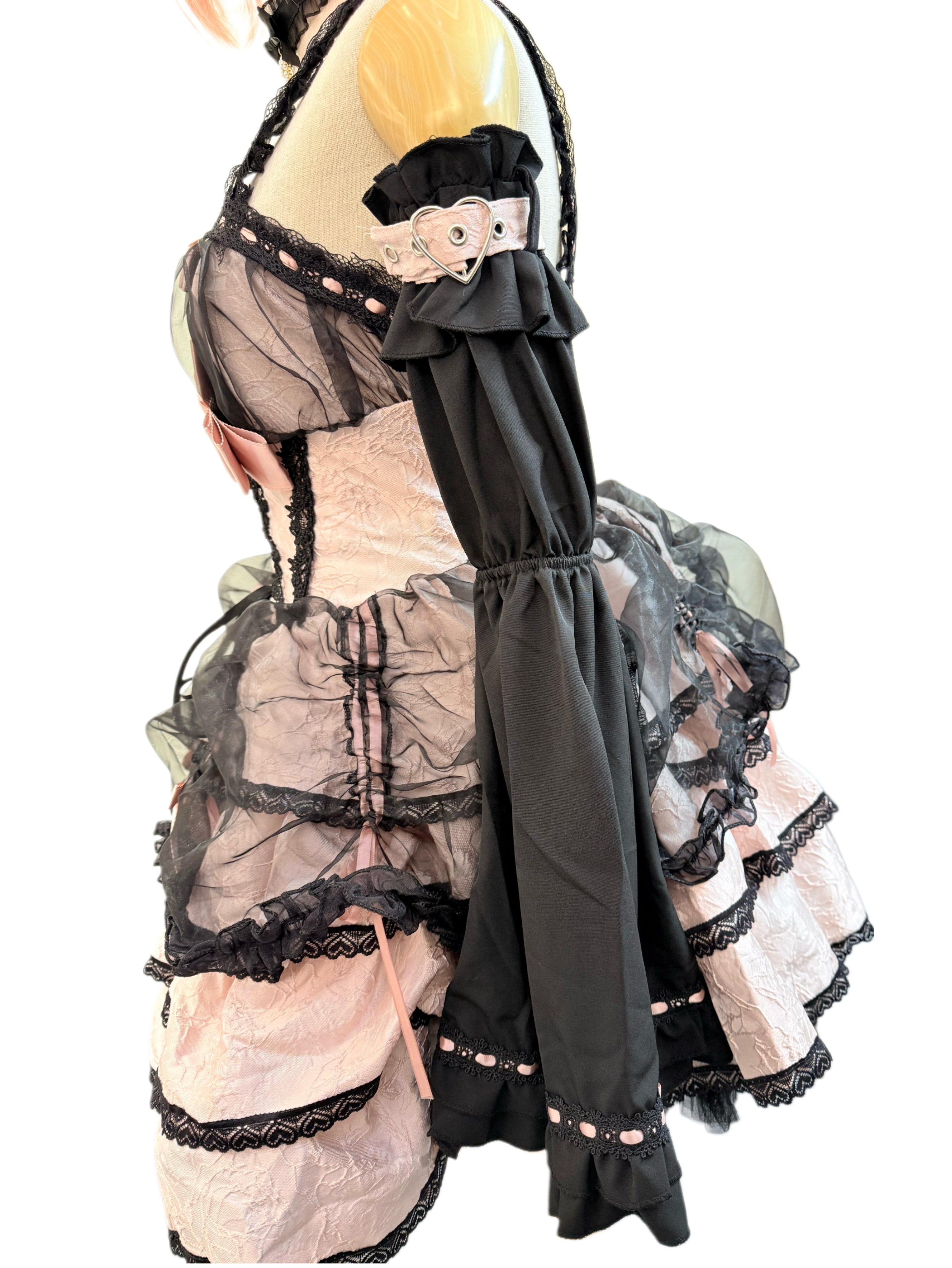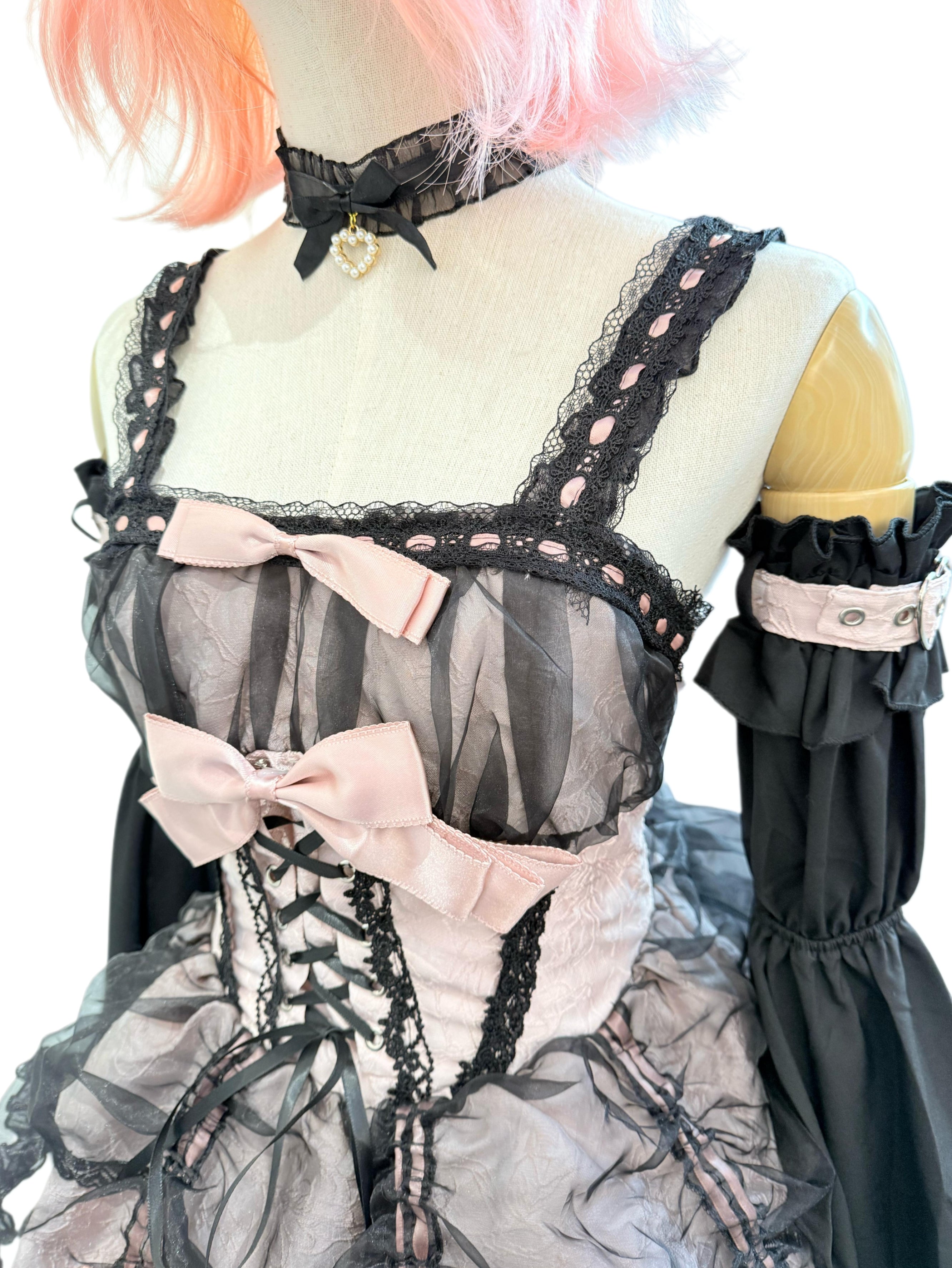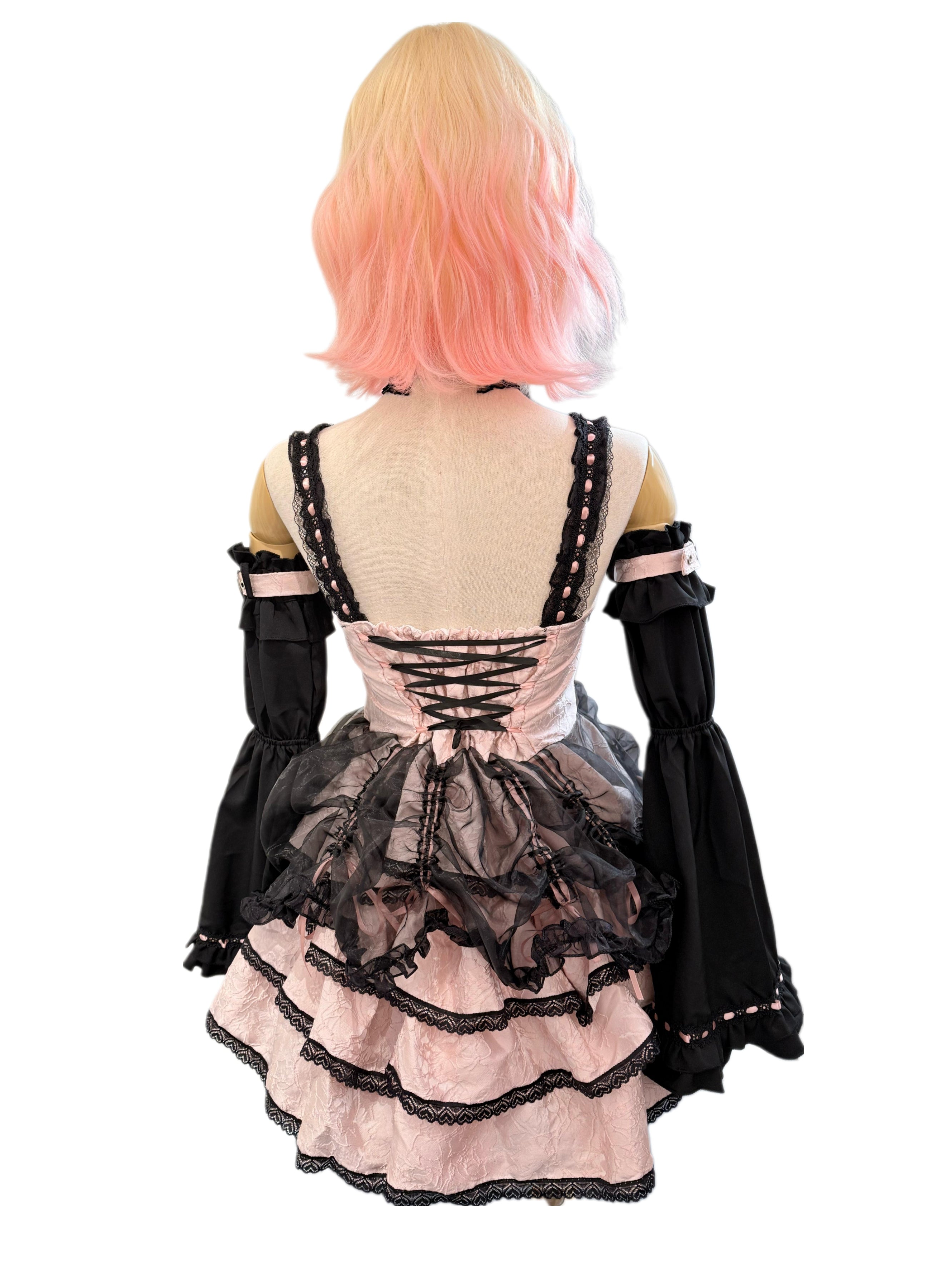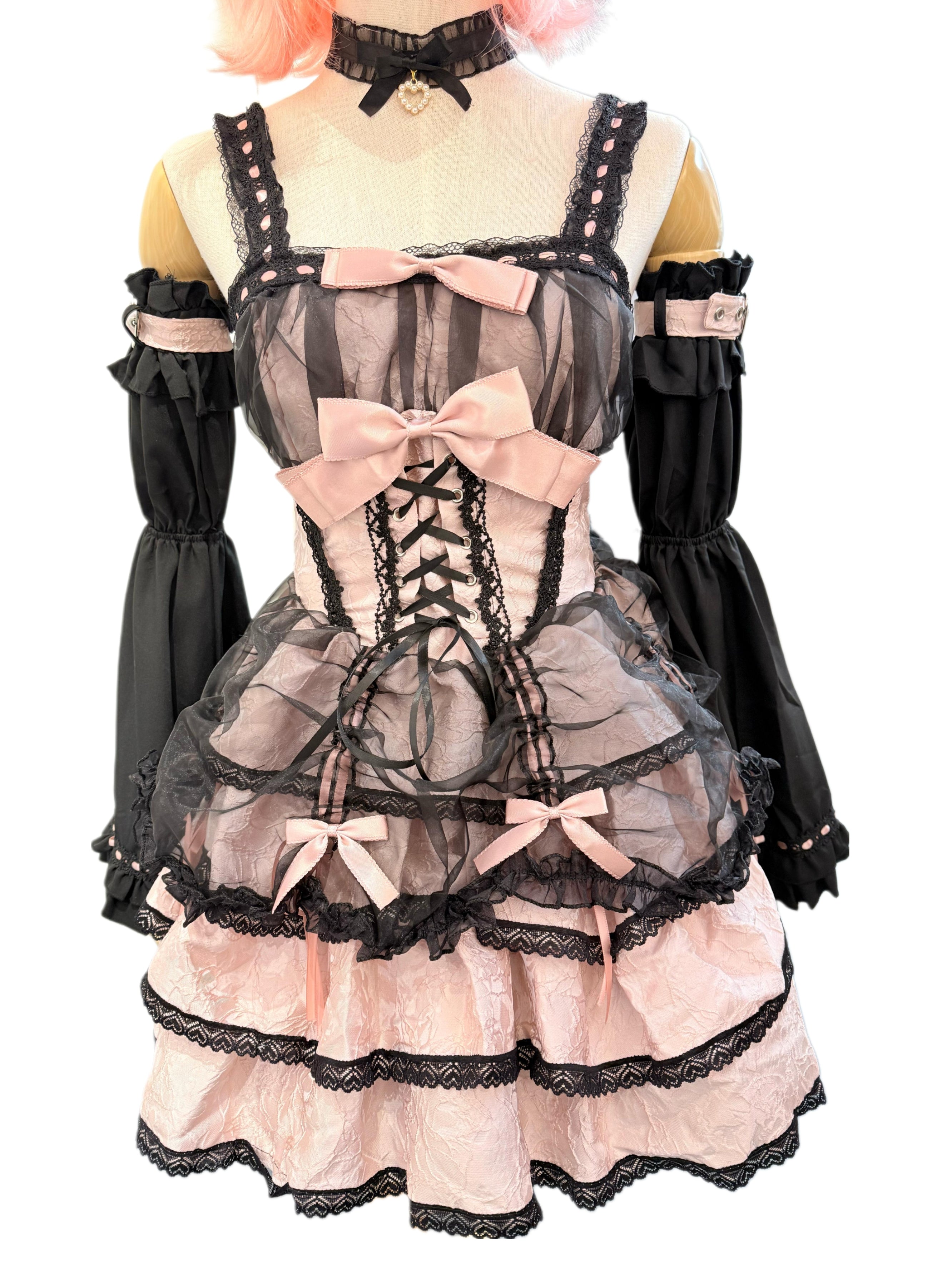 ✨ Sweet Bow Details: Pink satin bows embellish the bodice and skirt, adding a hint of cute femininity to the overall look.