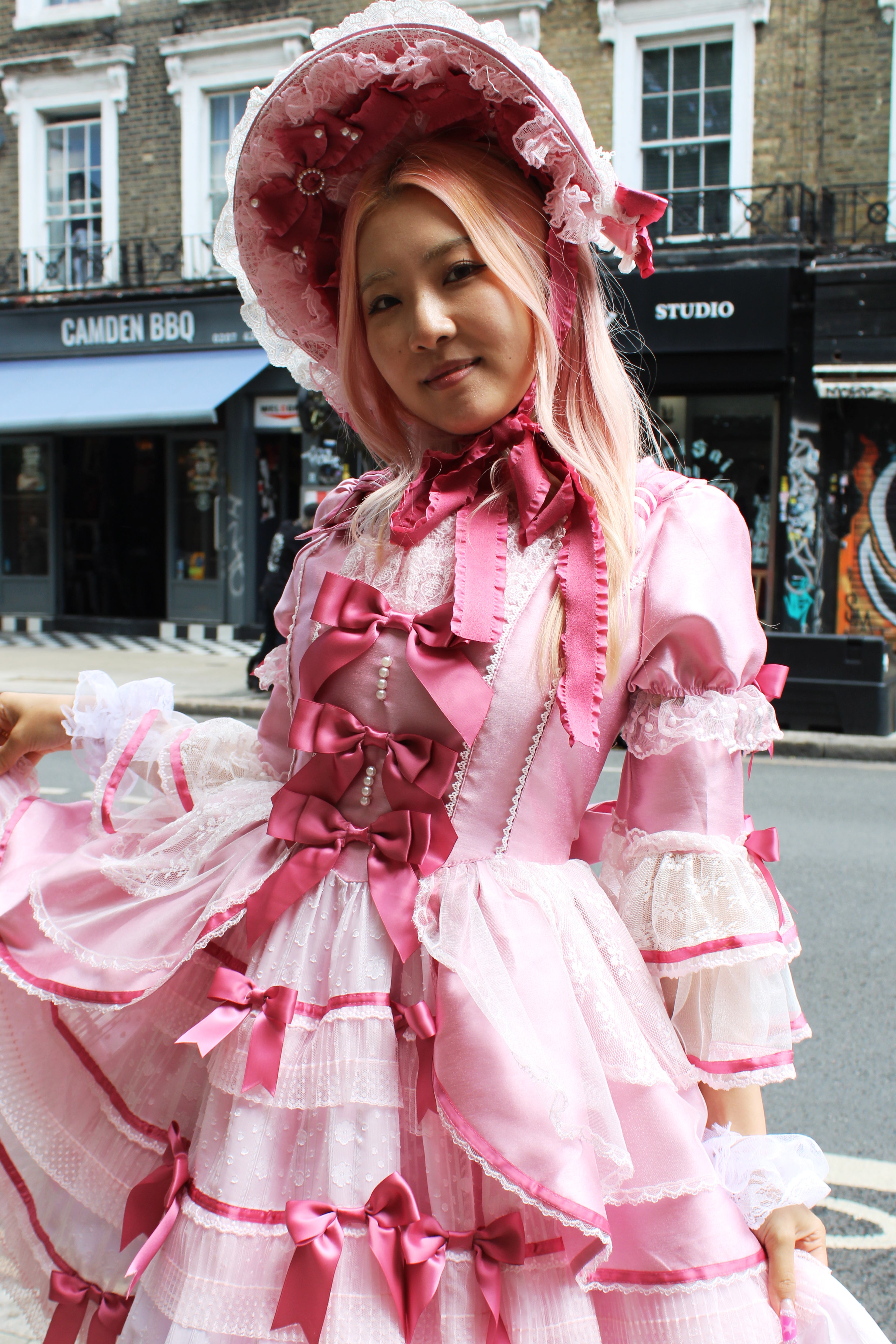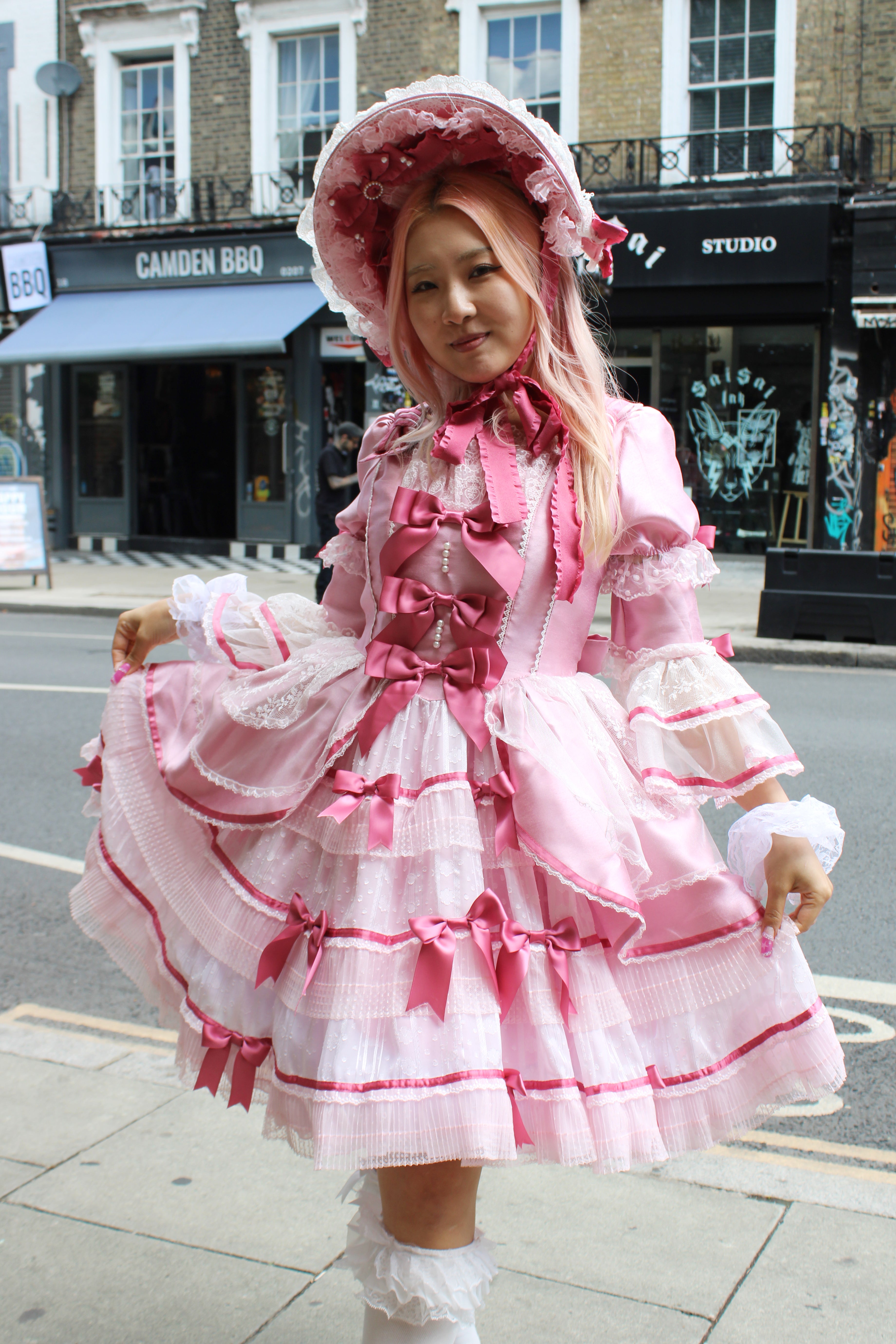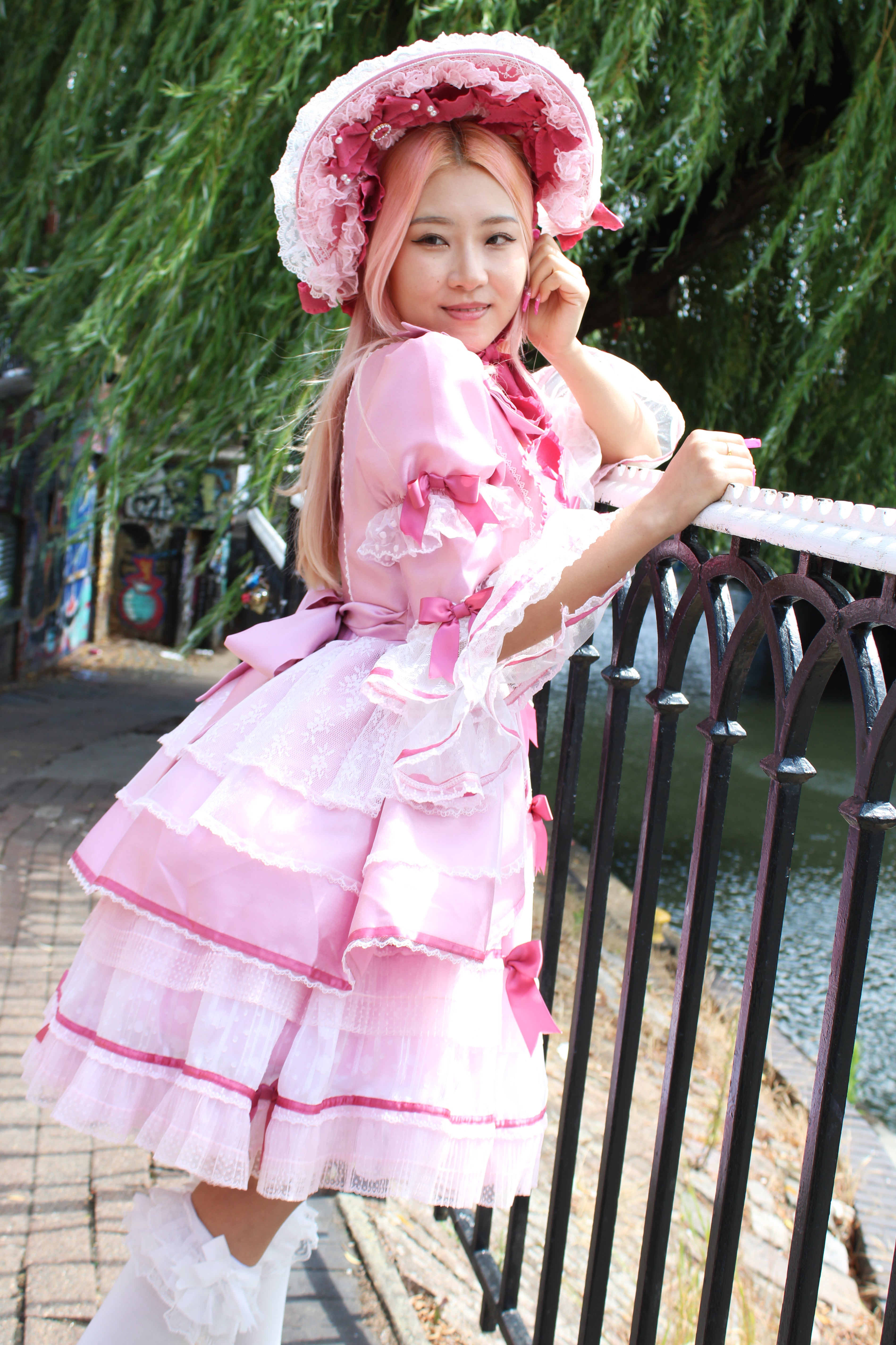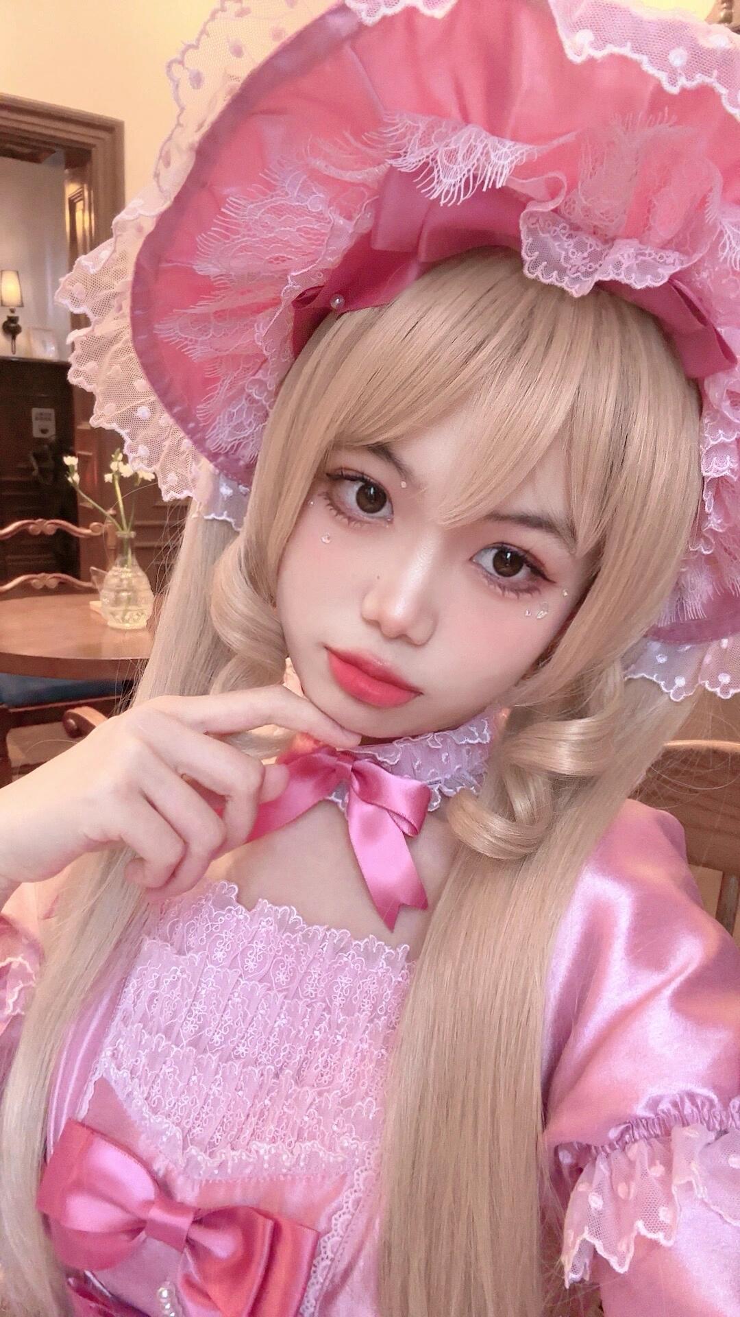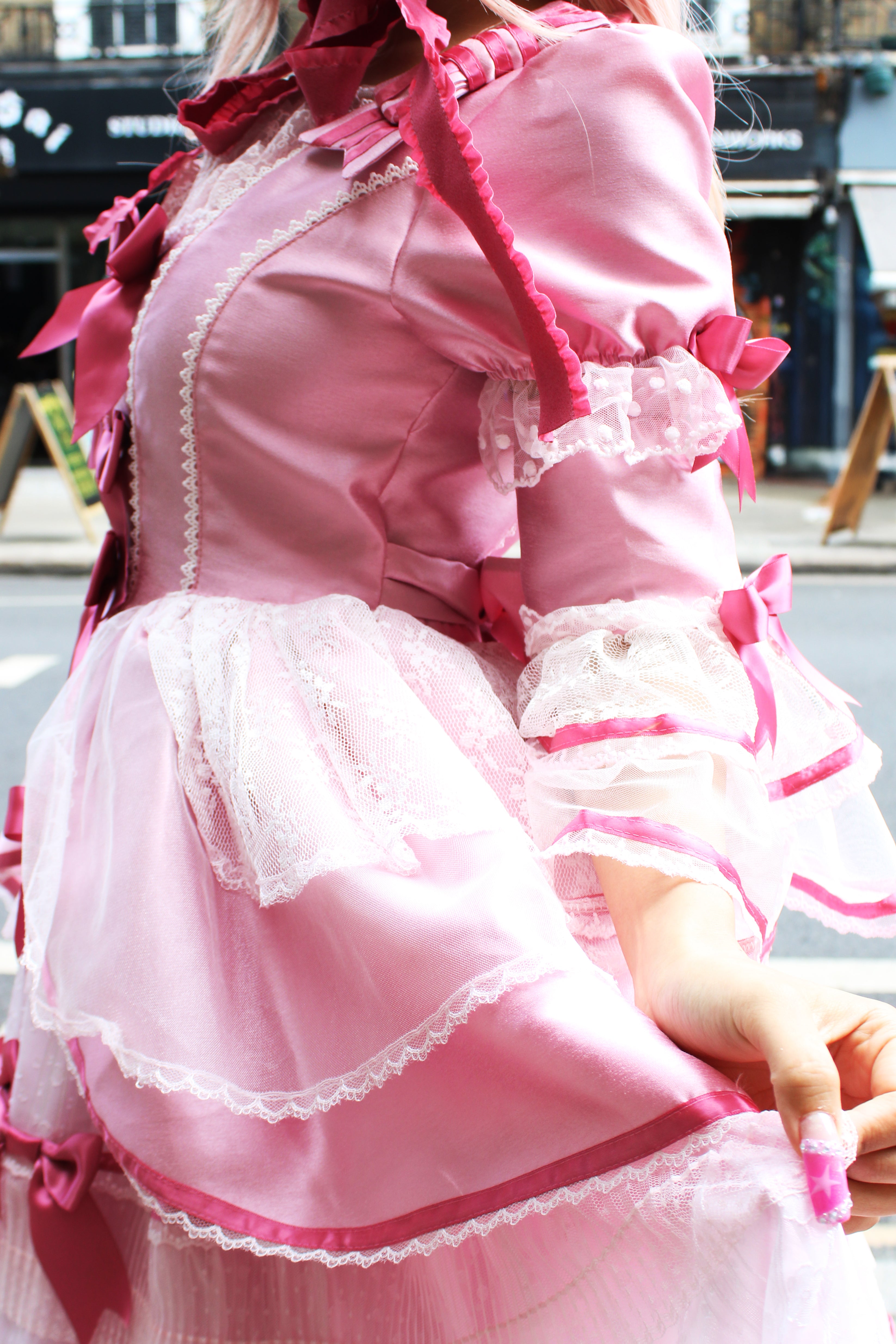 The pink, white, and fuchsia color palette contrasts beautifully, evoking a doll-like charm