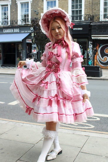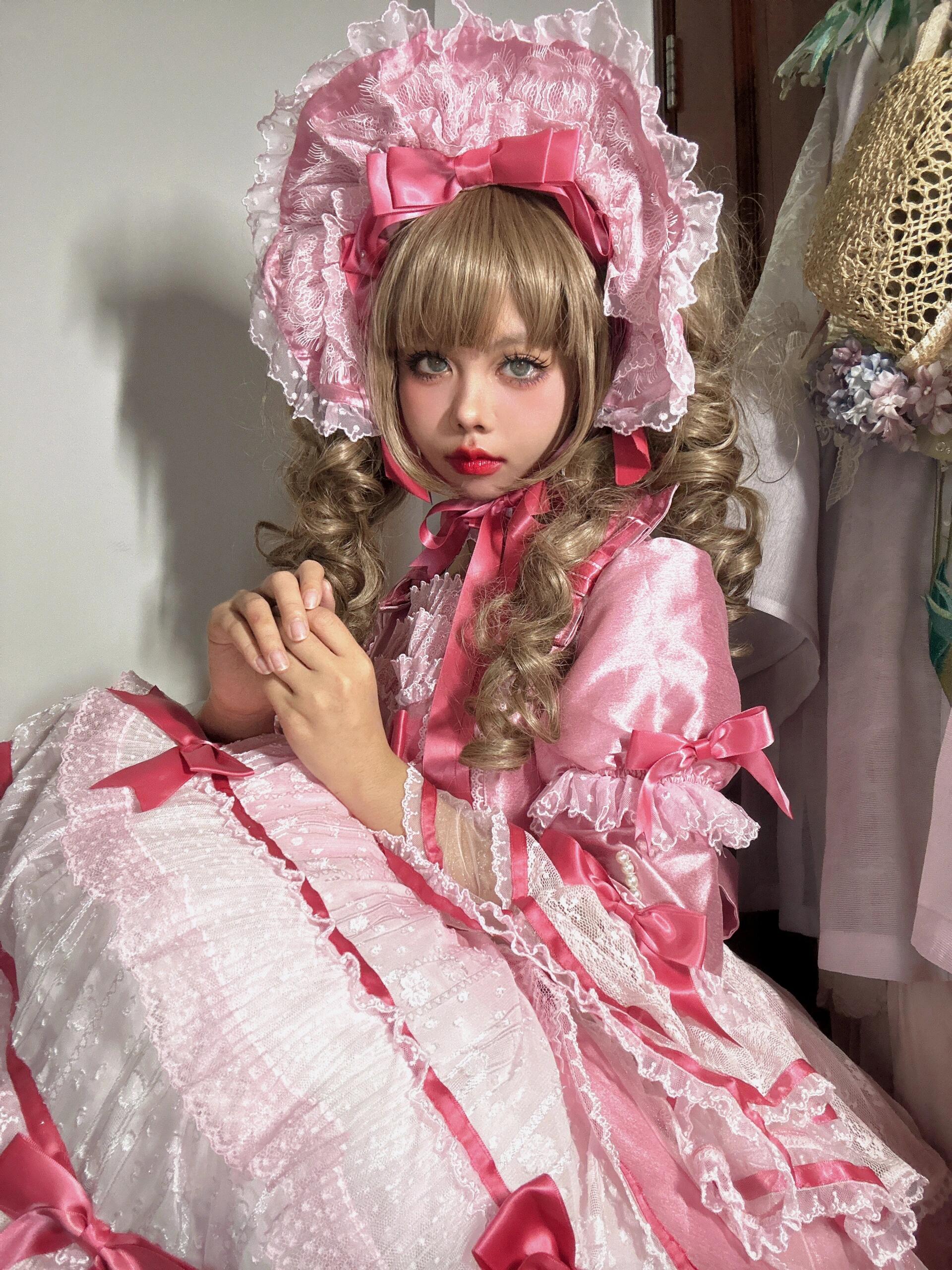 - Matching bonnet to complete the ensemble, enhancing the doll-like aesthetic with a timeless grace.