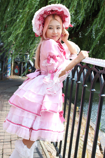 Lolita Dress Doll-Like with Removable Sleeves & Bonnet