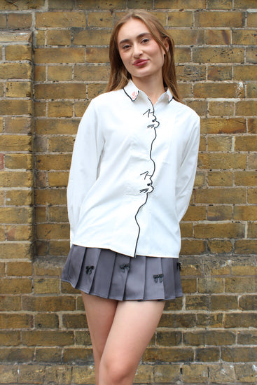 For the cat lover with a flair for chic minimalism — the Meaow Lines Blouse is here to steal hearts. Crafted in crisp white fabric, this long-sleeve beauty features an artistic black outline of a curious kitty running down the button placket, while the collar is playfully adorned with soft pink embroidered paw prints. Pair it with skirts, jeans, or tailored pants for an effortlessly adorable look that works for coffee dates, casual Fridays, or just curling up with a good book. Available in sizes S to XL for a fit that’s as cozy as it is stylish. 🐱✨