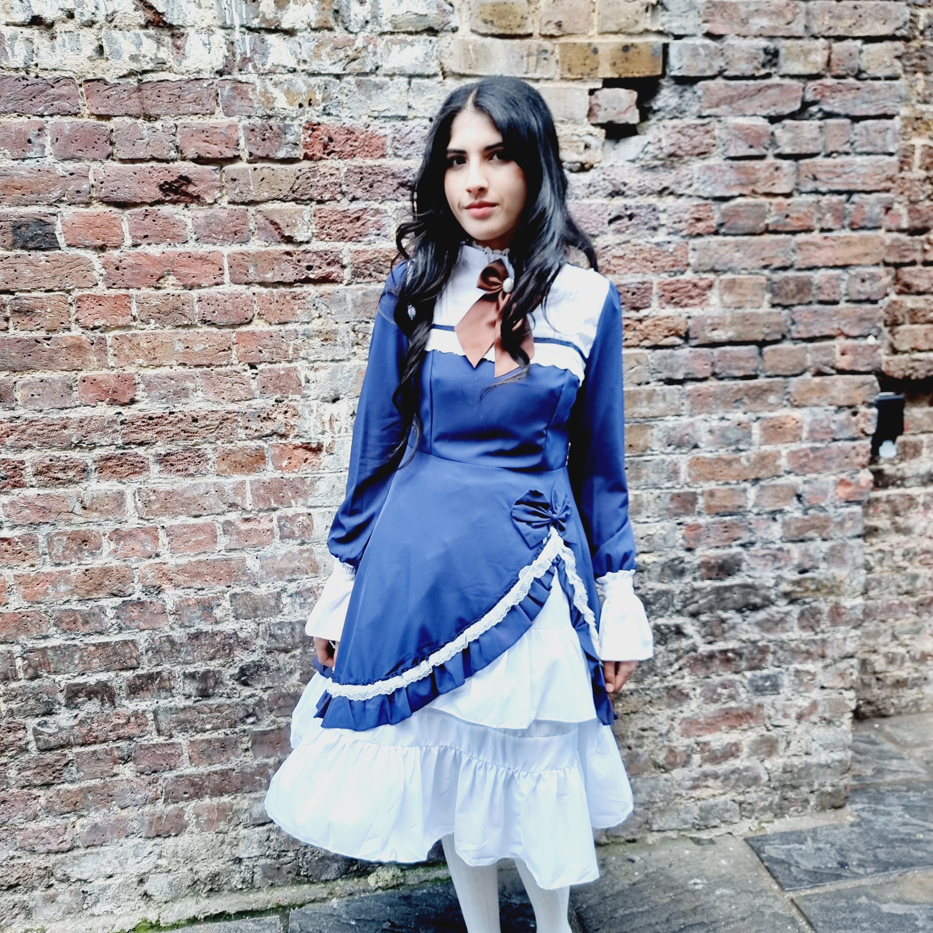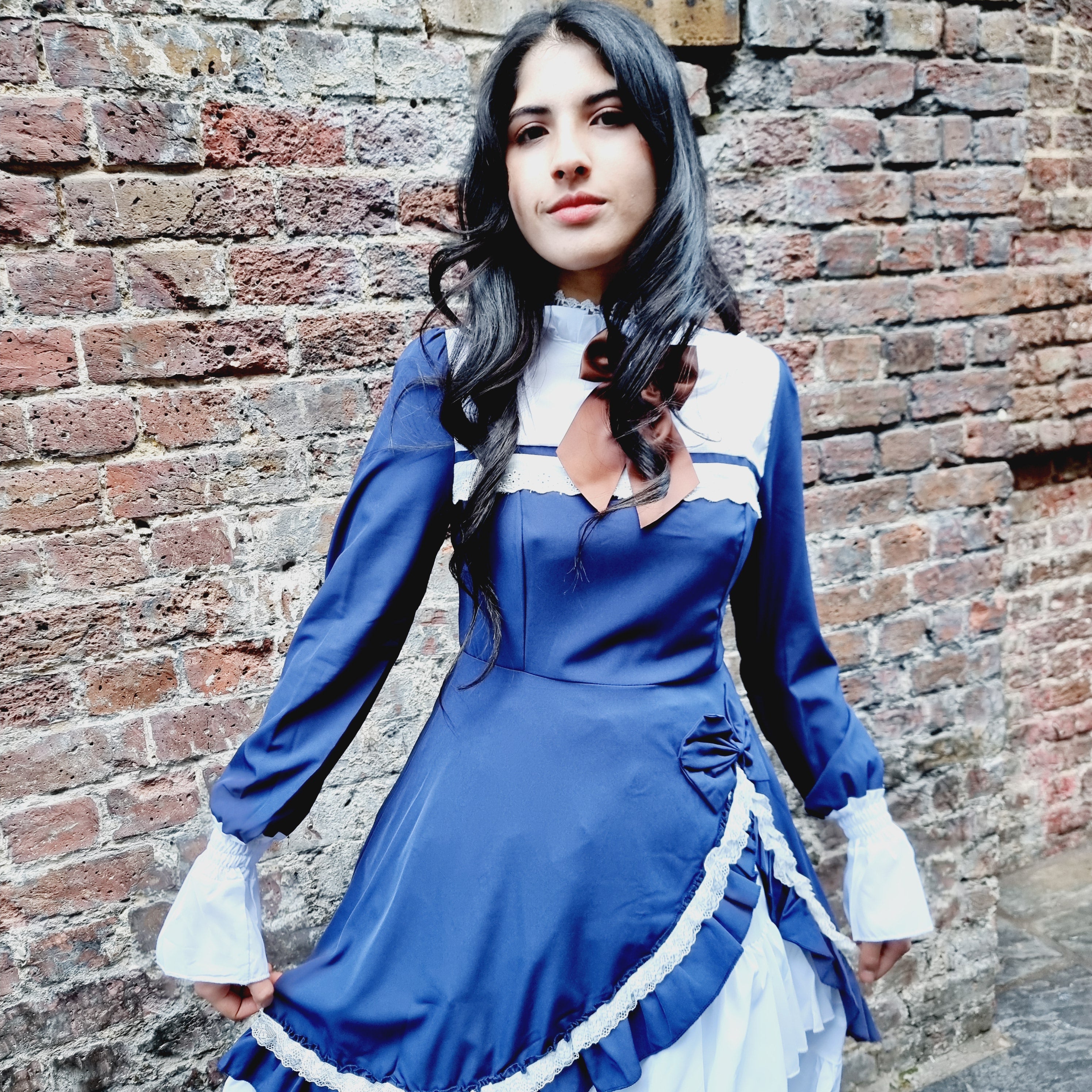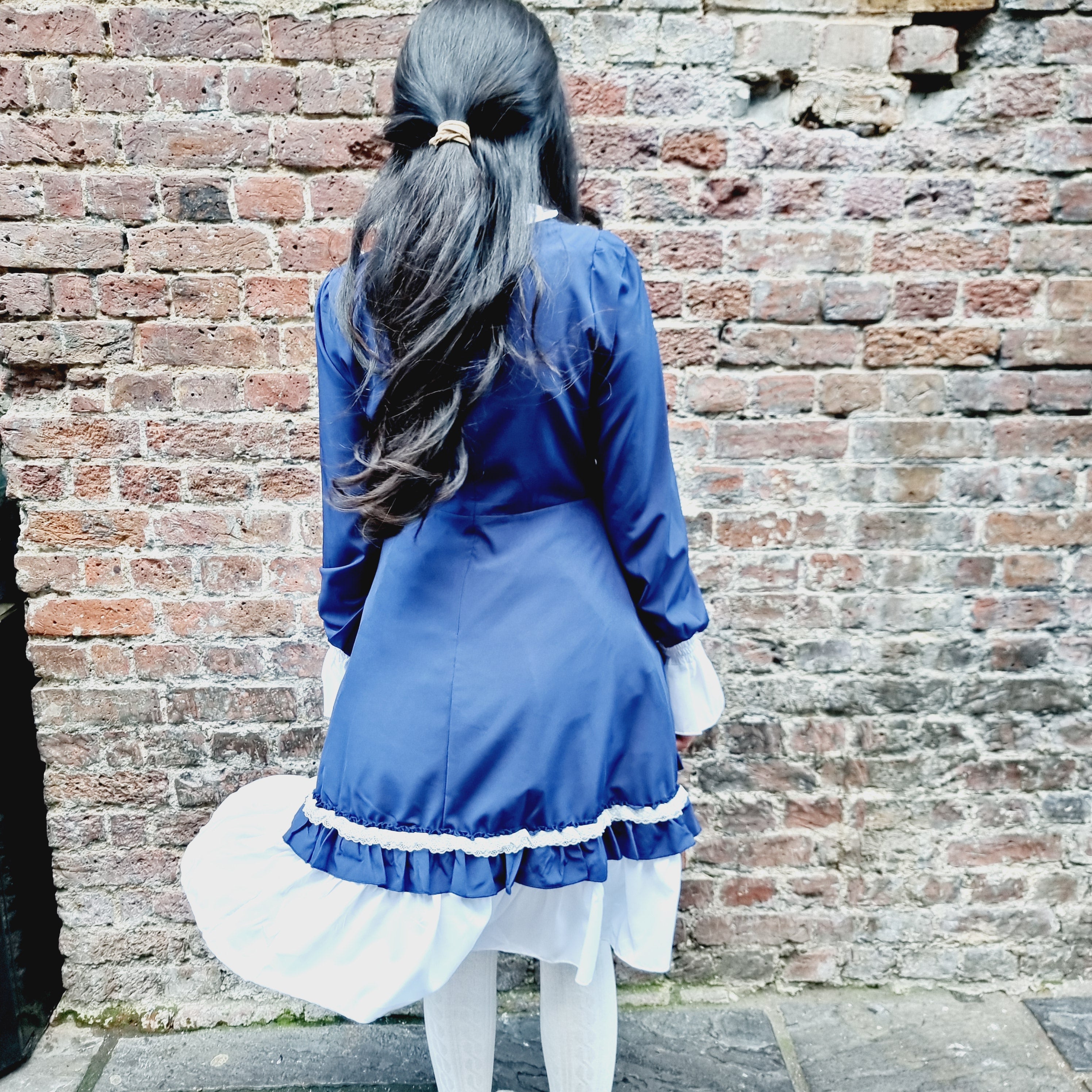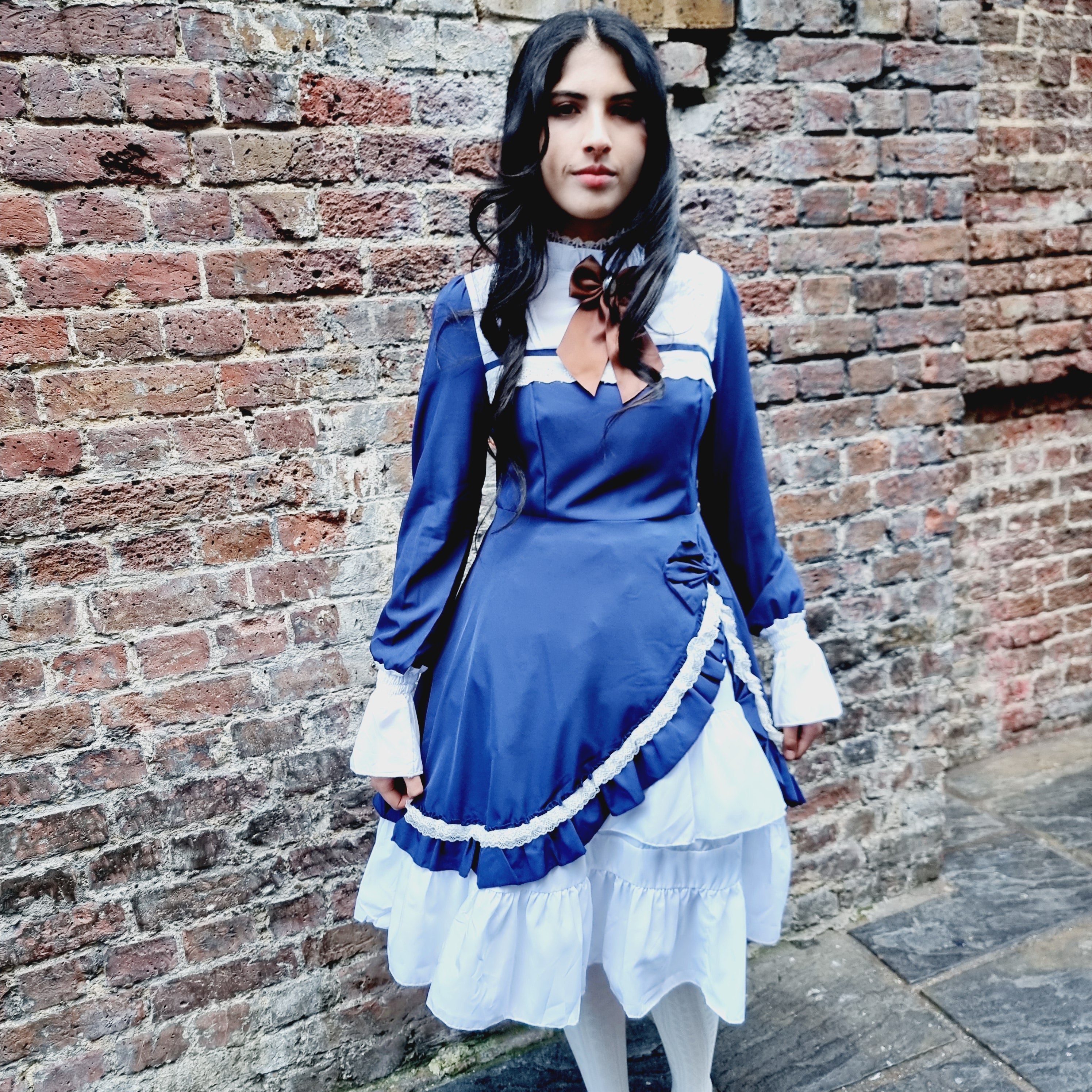 Step into classic elegance with the Midnight Elegance Blue Lolita Dress, a perfect piece for lovers of vintage-inspired fashion. This deep, sophisticated blue dress features a contrasting white collar and tiered ruffled hem for a timeless Lolita silhouette. The bodice showcases intricate lace-up detailing with delicate satin ribbons and pearl-like heart buttons, embodying a sweet, yet refined aesthetic. Long sleeves with ruffled cuffs add a touch of grace and charm. Perfect for formal tea gatherings, Lolita fashion events, or casual outings, this dress combines both comfort and style, giving you a flawlessly enchanting look every time.