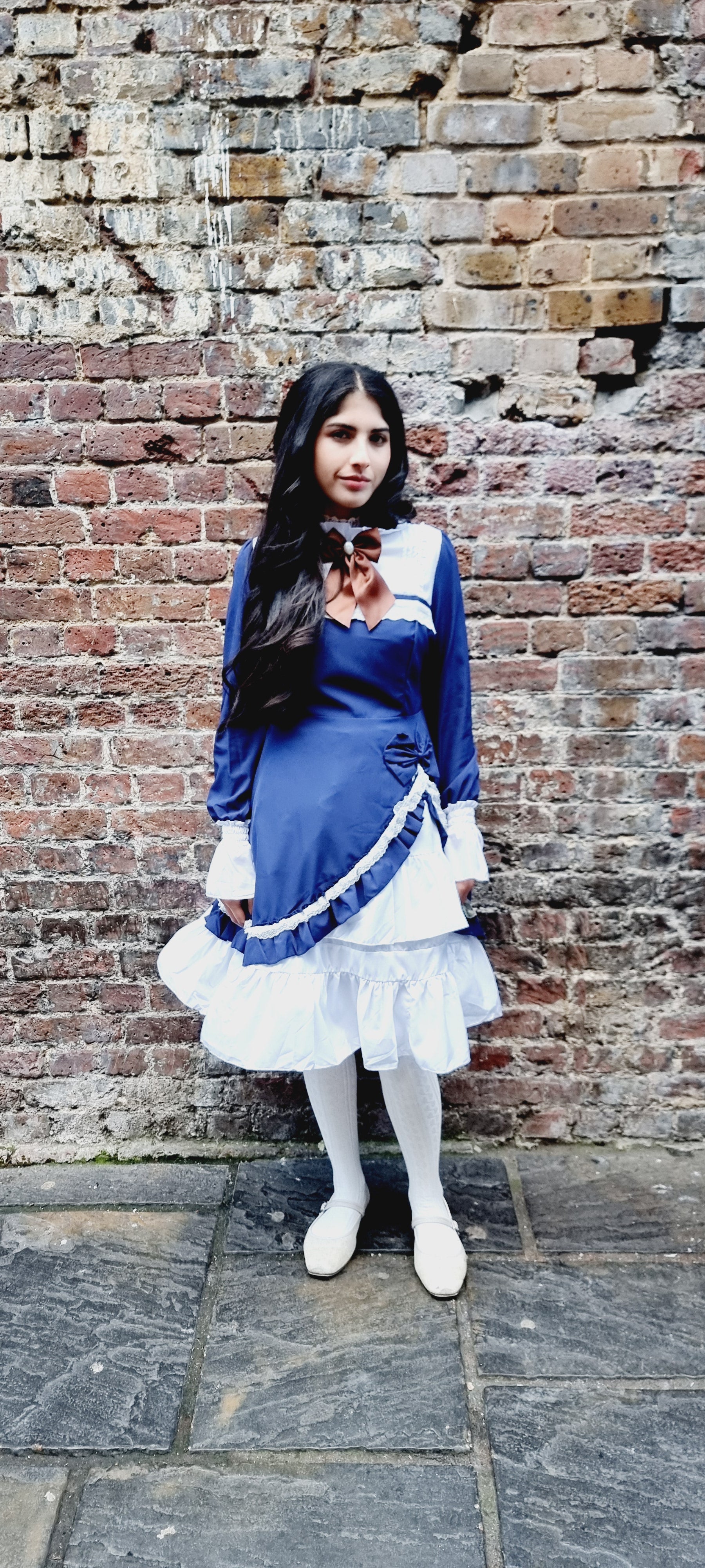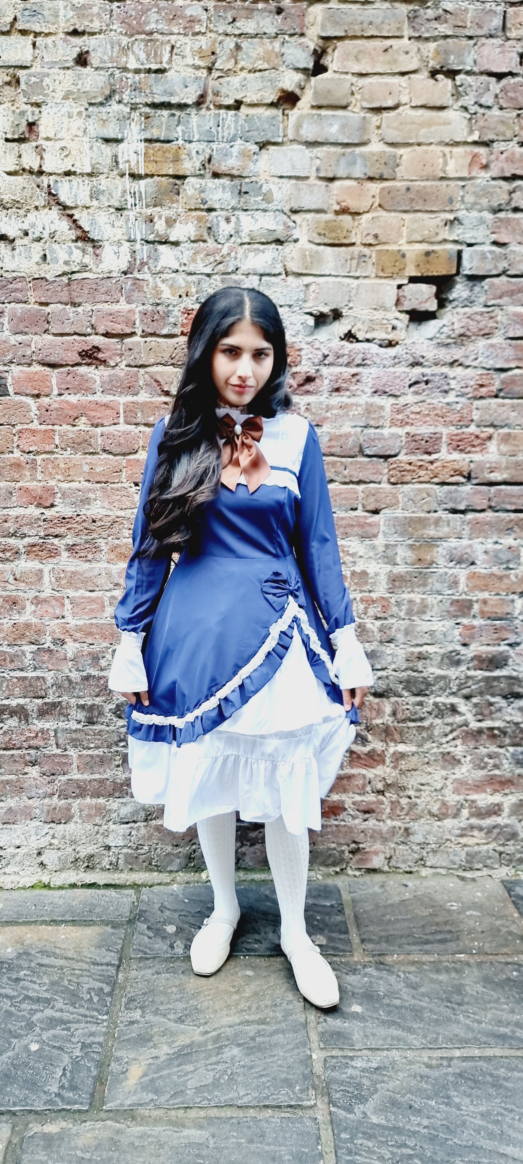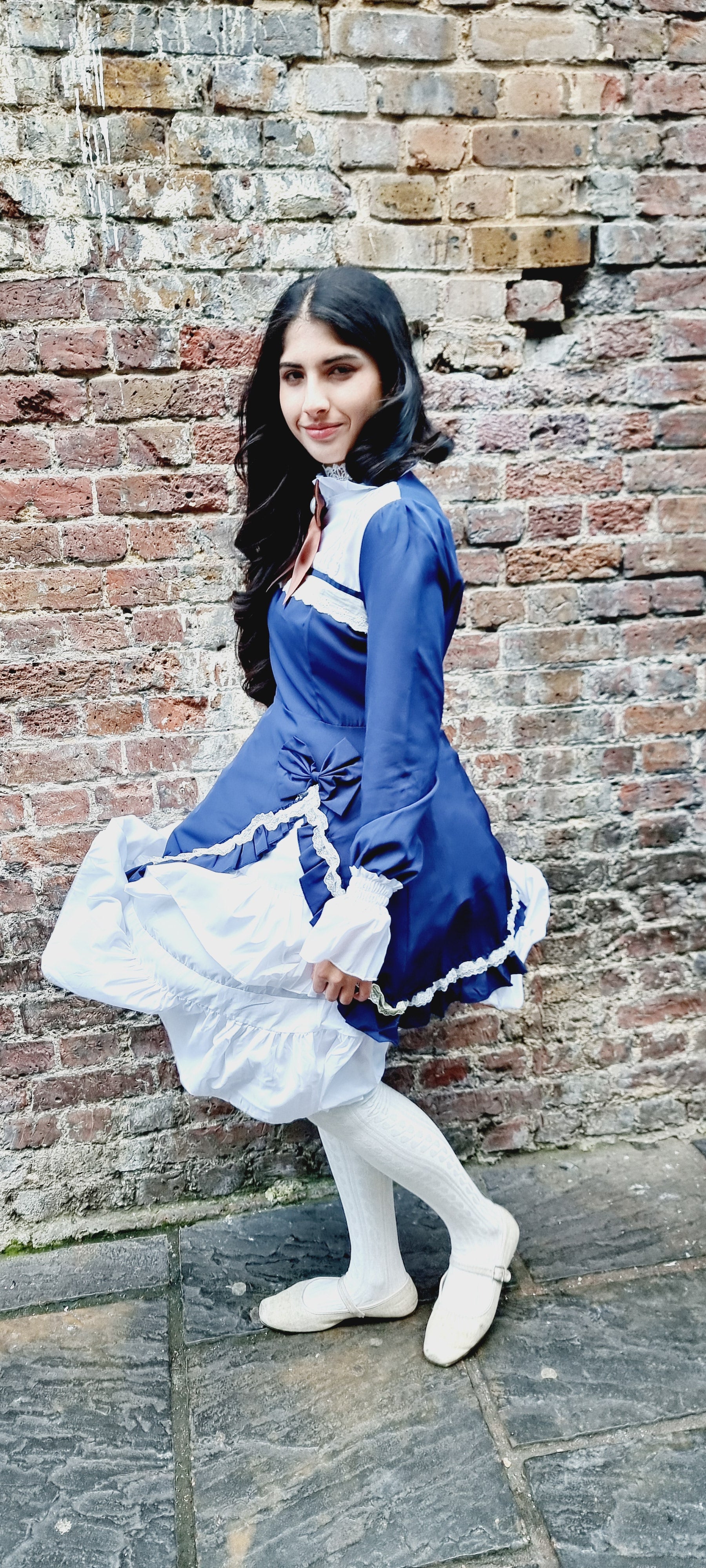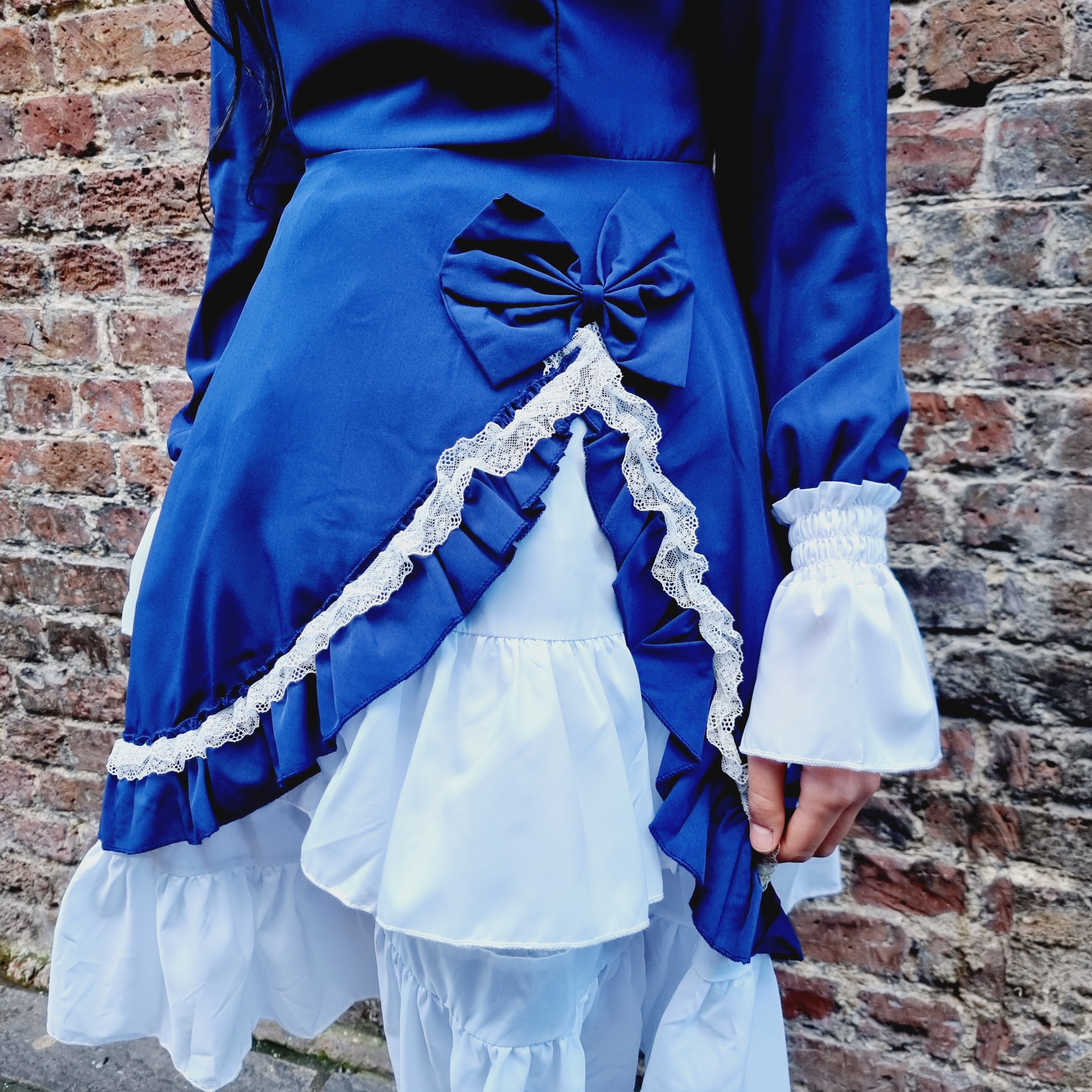 Step into classic elegance with the Midnight Elegance Blue Lolita Dress, a perfect piece for lovers of vintage-inspired fashion. This deep, sophisticated blue dress features a contrasting white collar and tiered ruffled hem for a timeless Lolita silhouette. The bodice showcases intricate lace-up detailing with delicate satin ribbons and pearl-like heart buttons, embodying a sweet, yet refined aesthetic. Long sleeves with ruffled cuffs add a touch of grace and charm. Perfect for formal tea gatherings, Lolita fashion events, or casual outings, this dress combines both comfort and style, giving you a flawlessly enchanting look every time.
