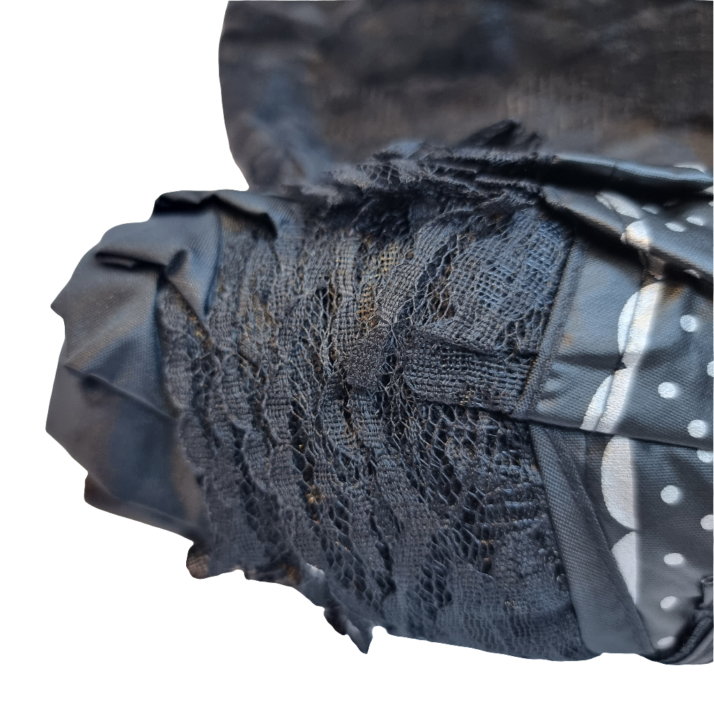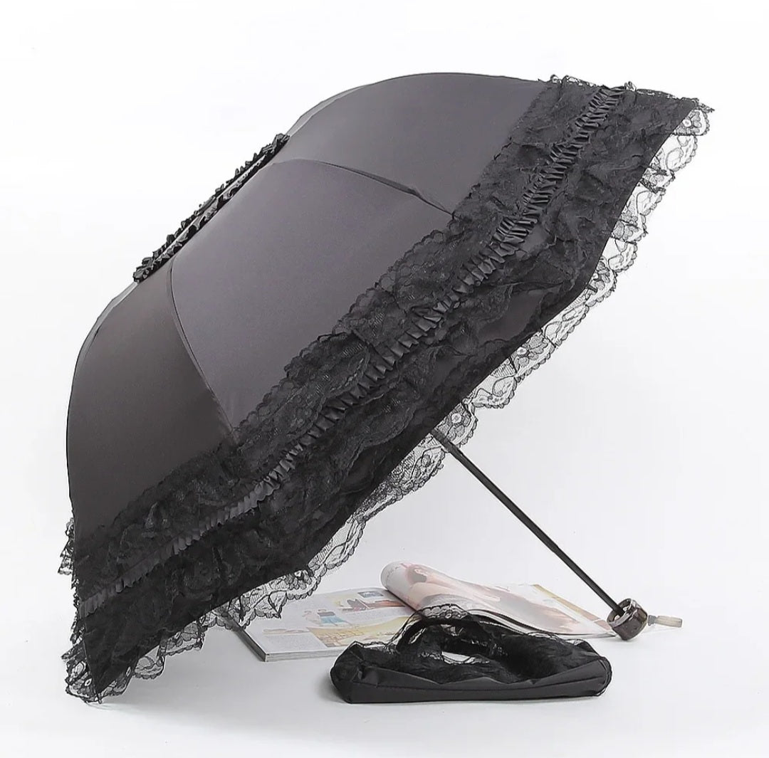 Step into a world of gothic charm with our Midnight Elegance Lace Parasol-Umbrella & Handbag Set. This stunning black parasol-umbrella is adorned with intricate lace and elegant ruffles, offering both sophistication and protection from the sun or rain. The matching handbag, designed with the same exquisite lace detailing, adds an air of mystery and refinement to any Lolita or gothic ensemble. Perfect for fashion lovers who embrace the darker side of elegance, this set is the ideal accessory for special occasions, evening strolls, or everyday style statements. Let Midnight Elegance add a touch of timeless beauty to your wardrobe.