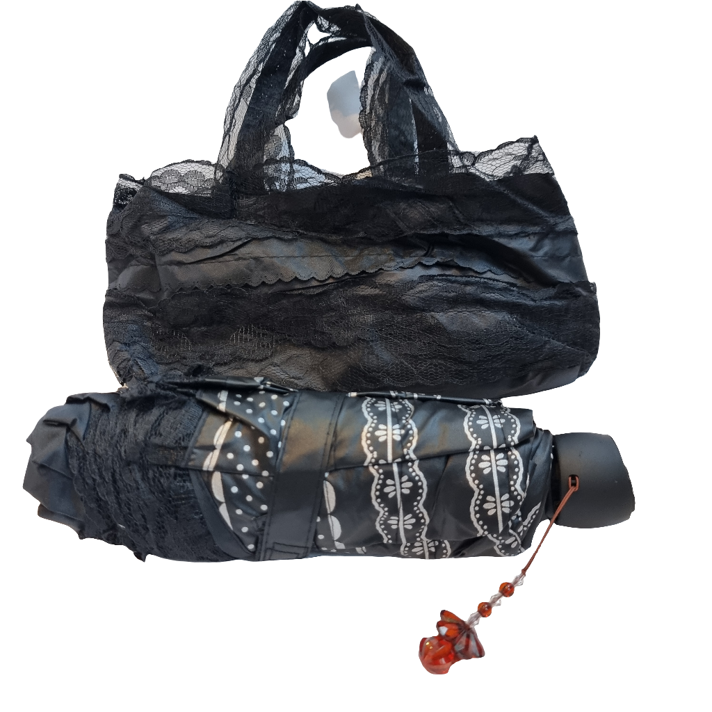 Midnight Elegance Lace Parasol-Umbrella & Handbag Set