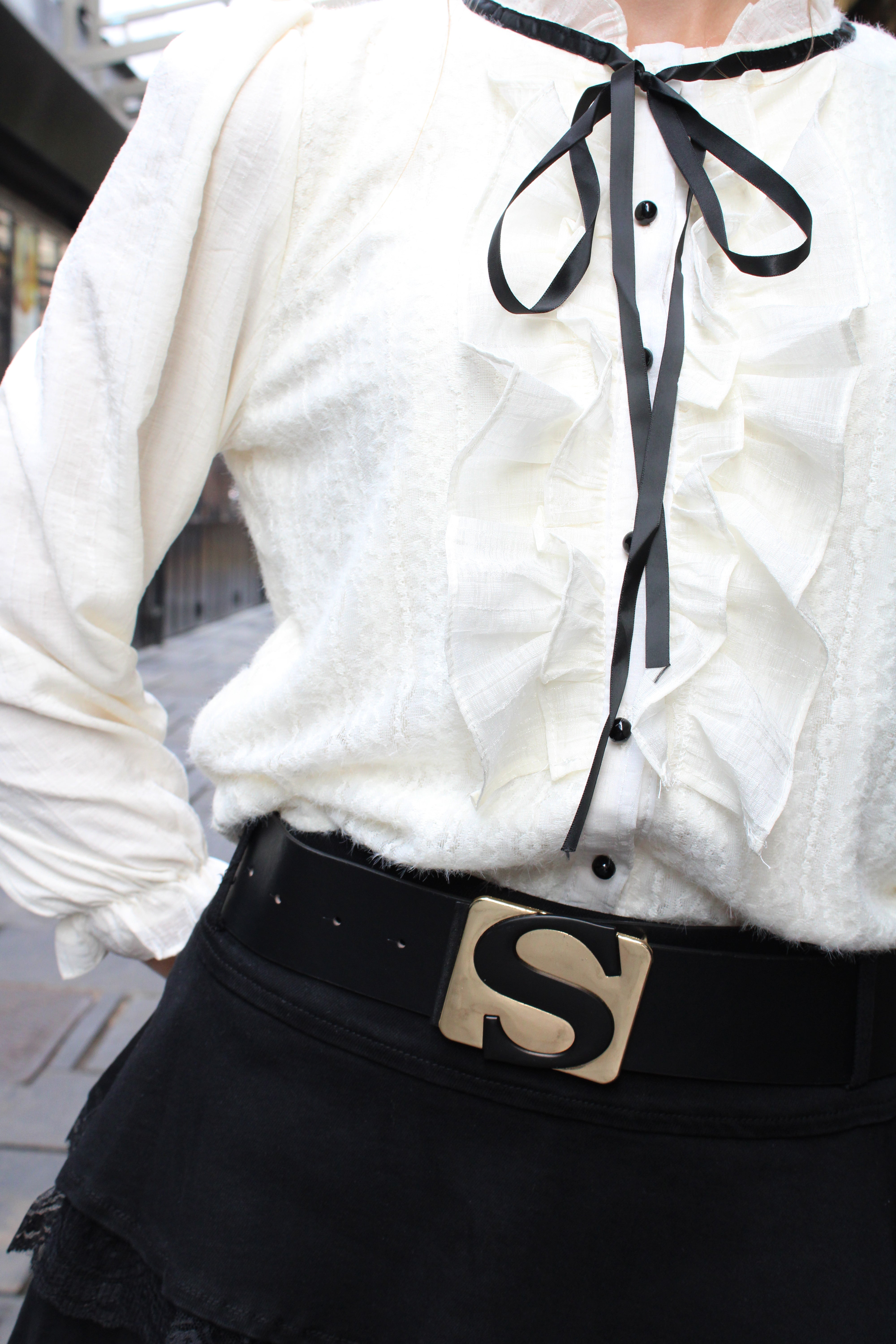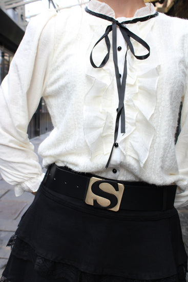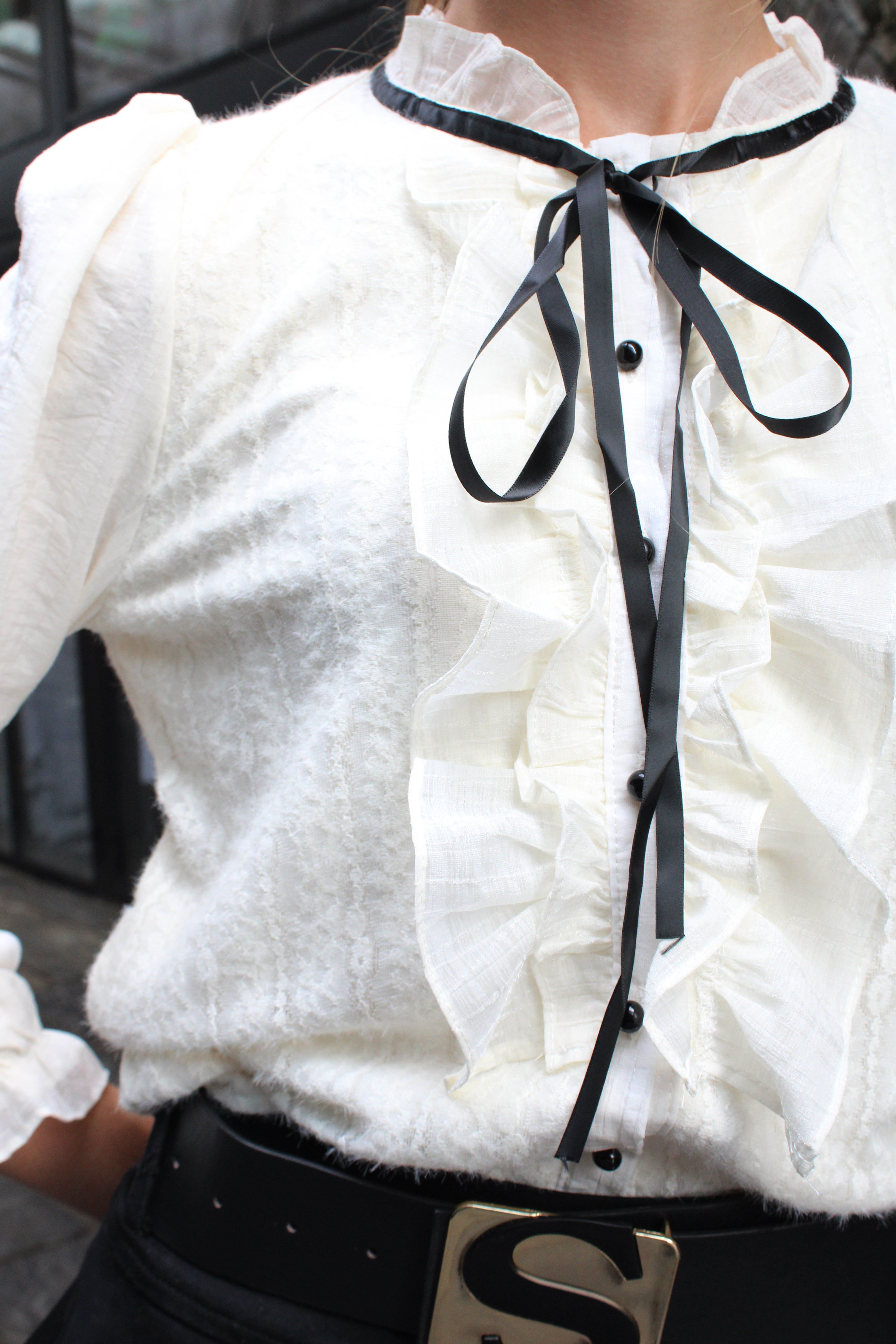 Midnight Ribbon Ruffle Blouse