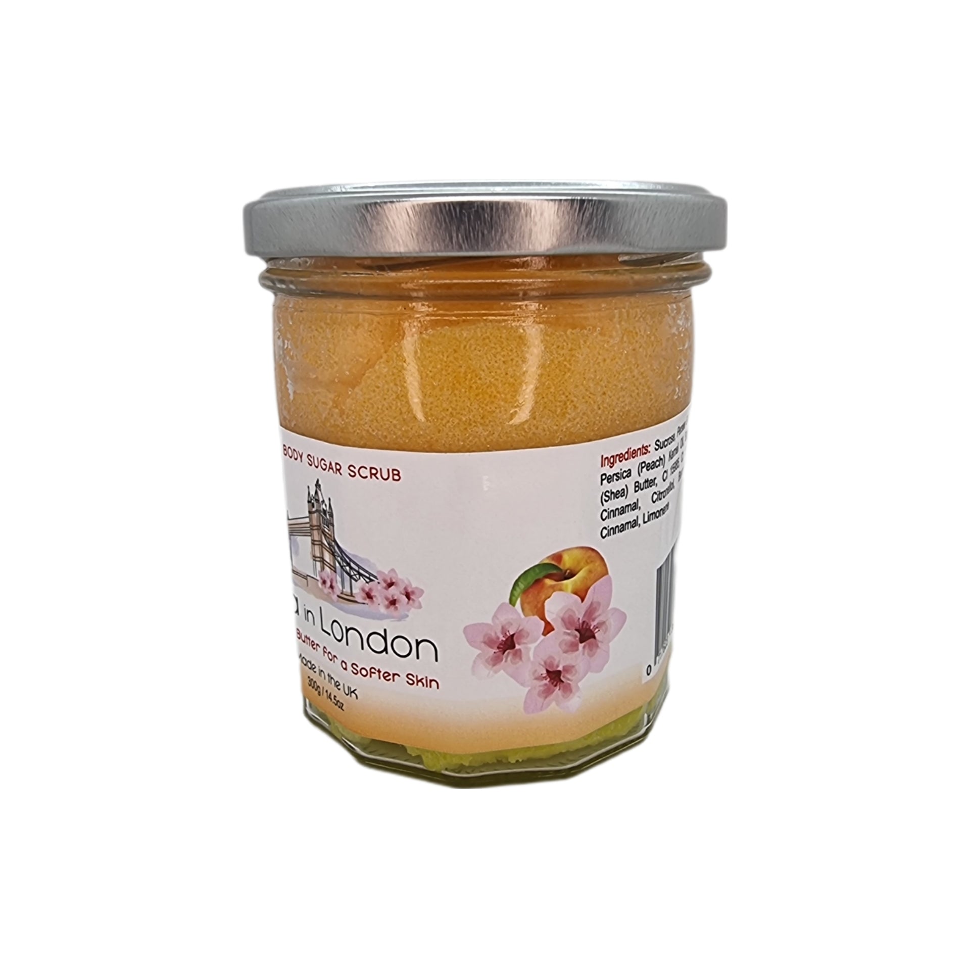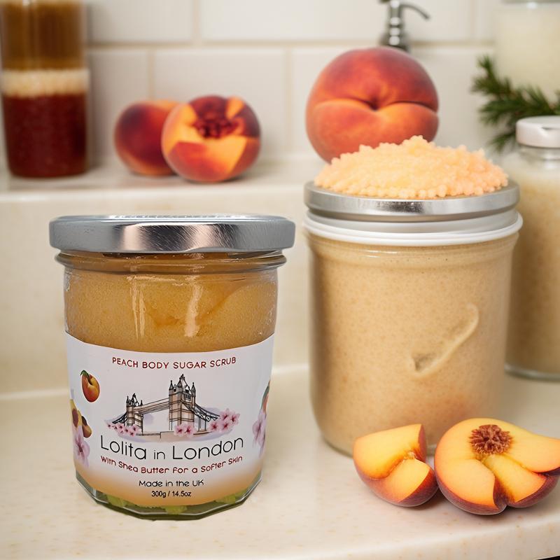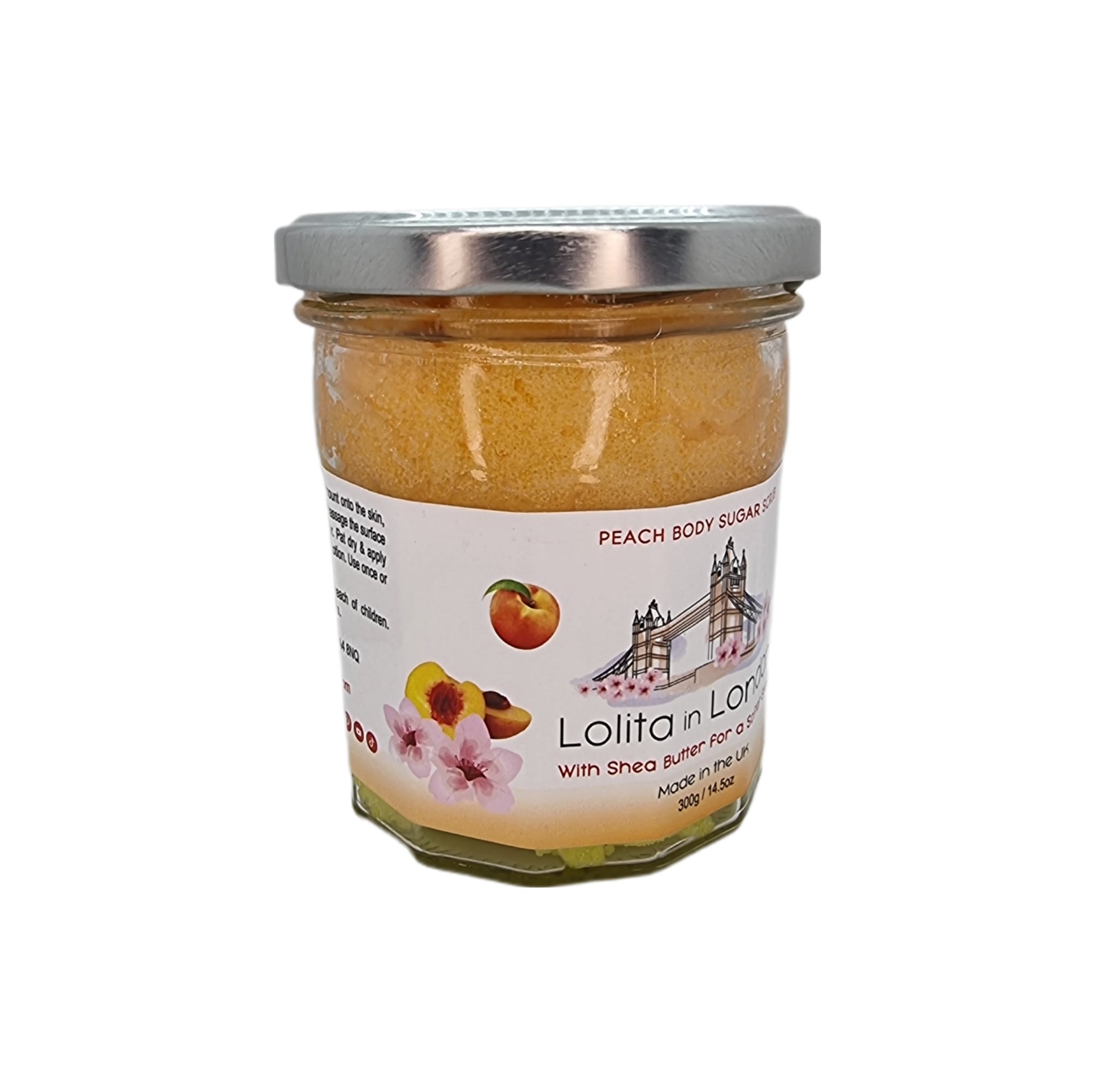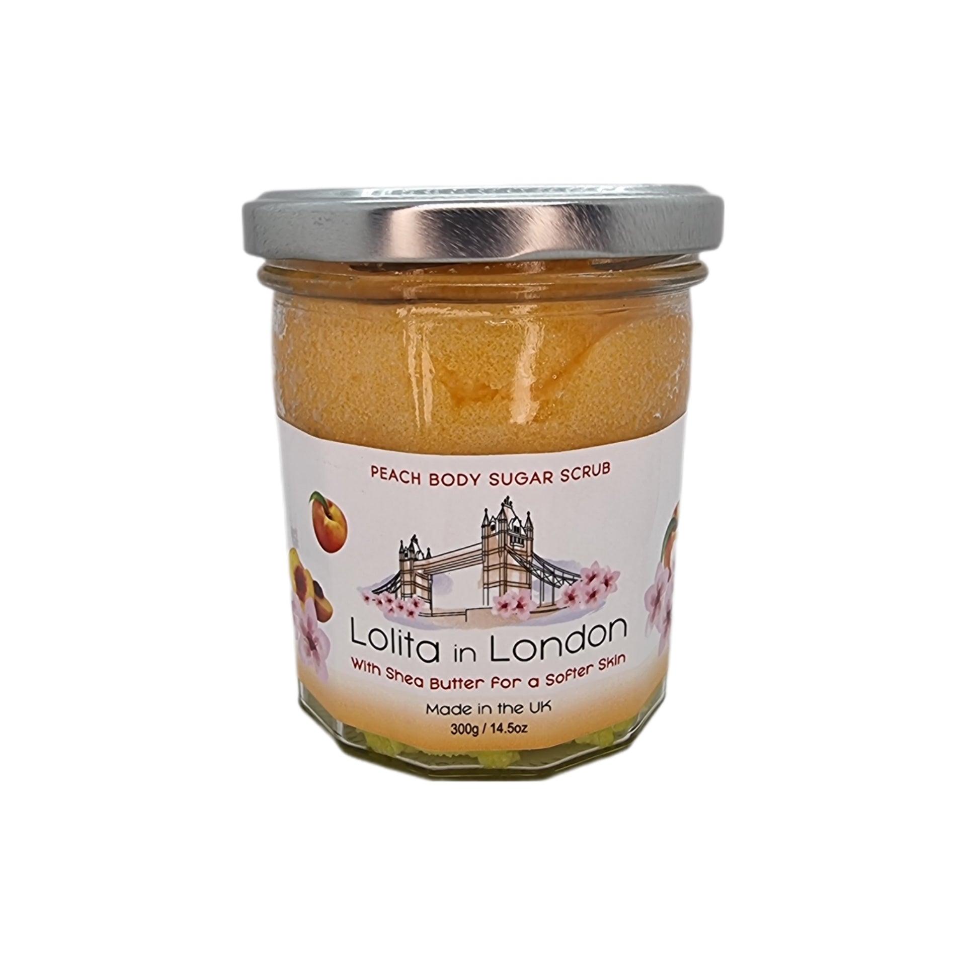 Experience the joy of velvety-smooth skin and intoxicating fragrances with our Lolita in London Peach Sugar Body Scrub.