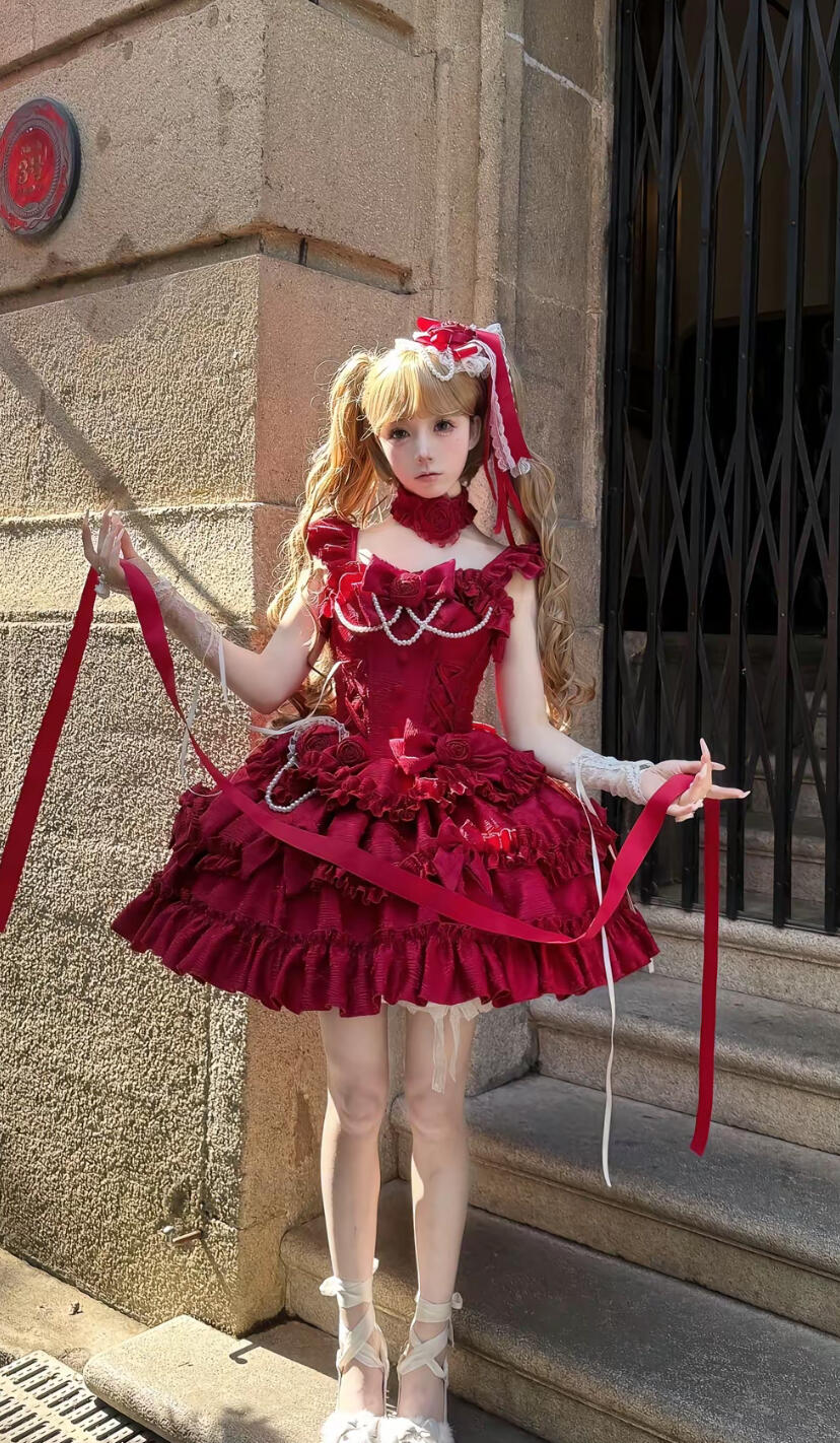 Fall in love with the Scarlet Elegance Lolita Dress โ a magical dress straight out of a fairytale! ๐นโจ