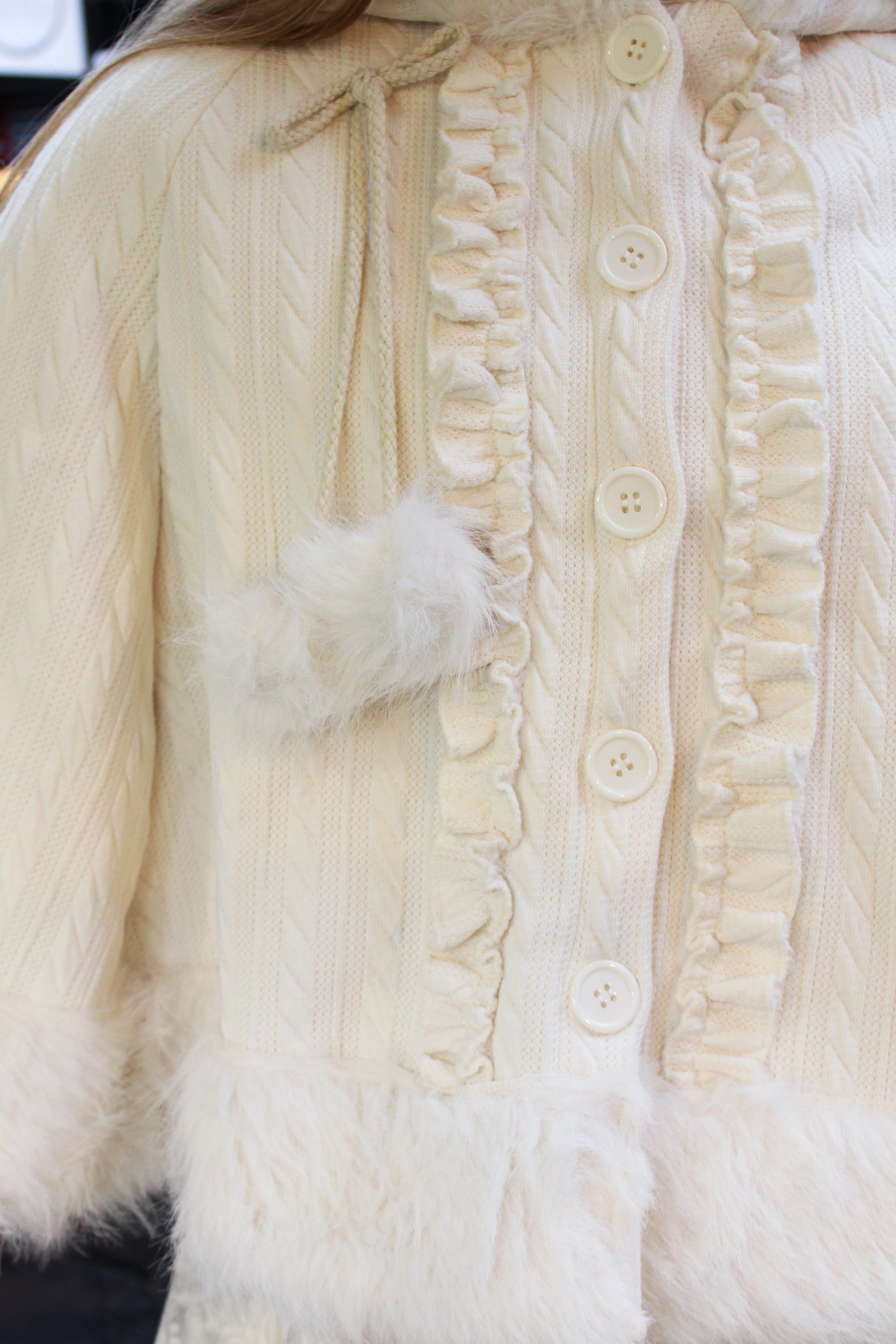 Bundle up in storybook sweetness with our Winter Lolita Poncho, a cozy knitted cape that looks straight out of a fairytale. With its soft cable-knit texture, fluffy faux-fur trim, and charming pom-pom ties, this poncho is perfect for keeping warm while looking effortlessly adorable. The ruffled button placket adds a delicate Lolita touch, while the flowing silhouette makes it easy to layer over your frilliest dresses.